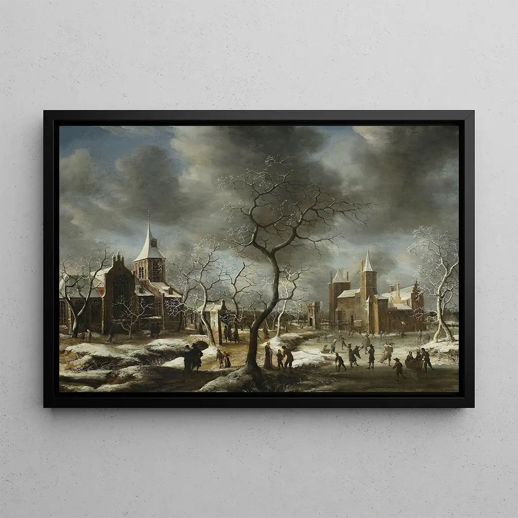 Paysage avec patineurs : an winter scene imbued with serenity The "Paysage avec patineurs" art print by Abraham Beerstraaten evokes a peaceful, wintry atmosphere, where the shimmering ice invites joy and conviviality. The composition unfolds with cool shades of blue and white, contrasted by warm touches of the skaters' clothing. The artist's technique, which skillfully plays with light, creates a dreamlike ambiance, transporting the viewer to an enchanting landscape. The meticulous details of the characters and natural elements add depth to this piece, making each glance at the canvas unique and captivating. Abraham Beerstraaten: a master of Dutch landscape art Abraham Beerstraaten, active in the 17th century, is renowned for his winter landscapes that capture the essence of daily life under snow. Influenced by the masters of the Dutch Golden Age, he developed a distinctive style that combines realism and poetry. His work belongs to a period when landscapes were highly valued, reflecting the beauty of nature and human activities. Beerstraaten was able to immortalize scenes of ice skating, bearing witness to a time when these leisure activities were at the heart of Dutch culture. His legacy endures, making him an essential figure in landscape art. A decorative piece with multiple virtues The art print of "Paysage avec patineurs" is an ideal decorative item to add a touch of elegance to your interior. Whether in a living room, office, or bedroom, this piece draws the eye and sparks conversations. The quality of the reproduction guarantees remarkable fidelity to the details of the original work, while offering undeniable aesthetic appeal. By choosing this canvas, you opt for a decoration that evokes the timeless beauty of winter, enriching your living space with a warm and welcoming atmosphere.