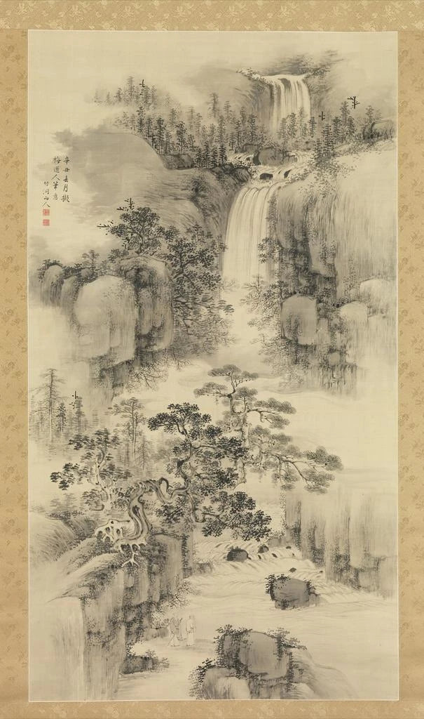 Landscape painting with waterfall - Nakabayashi Chikutō | Art print