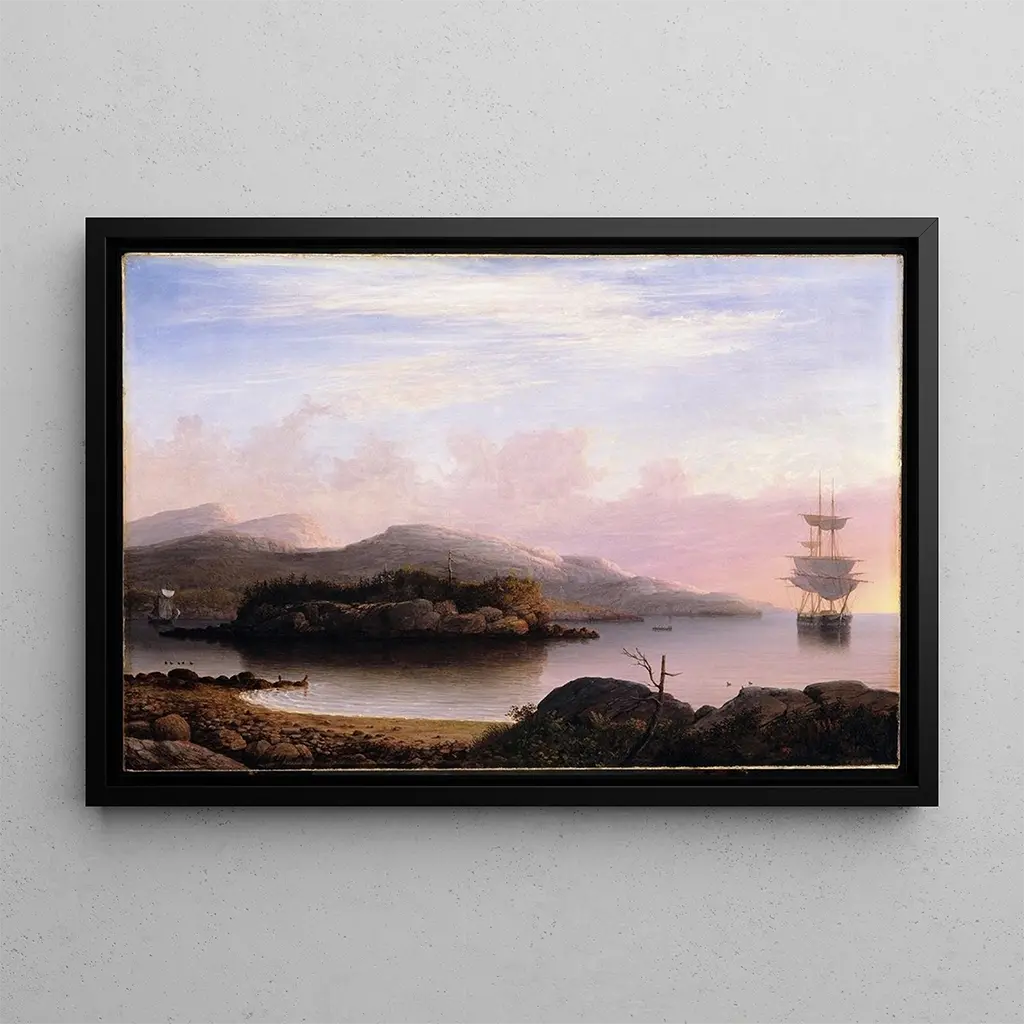 At sea off Mount Desert Island, Fitz Henry Lane offers us a striking view of the ocean, where shades of blue blend with the golden light of the setting sun. This art print, created with meticulous technique, captures the majesty of marine landscapes and the tranquility of the waters. The sailboats, delicately depicted, seem to dance on the waves, while the rocks and islands in the background add a sense of depth. Lane, through his skill, manages to convey an atmosphere of serenity and escape, inviting the viewer to contemplate the wild beauty of nature.