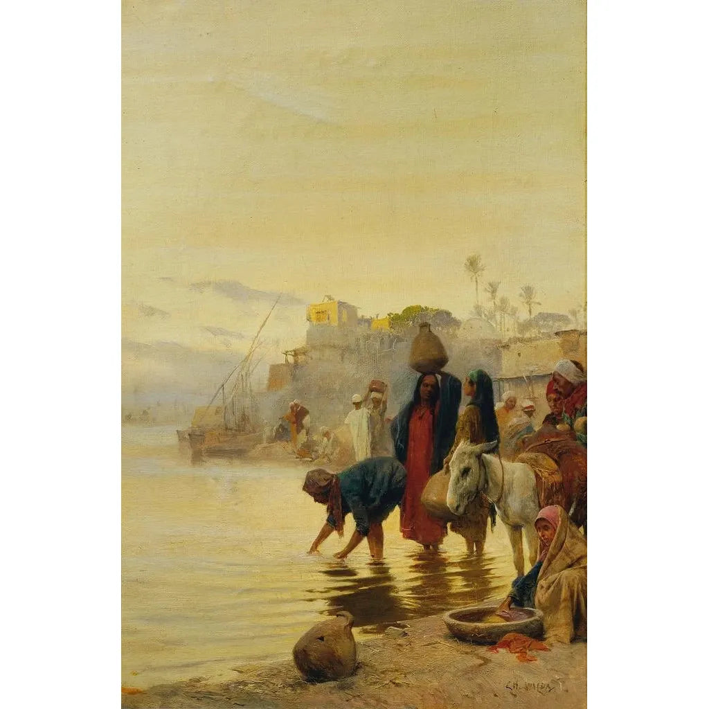 Lavandières sur le Nil: an art print capturing a lively scene by the water's edge