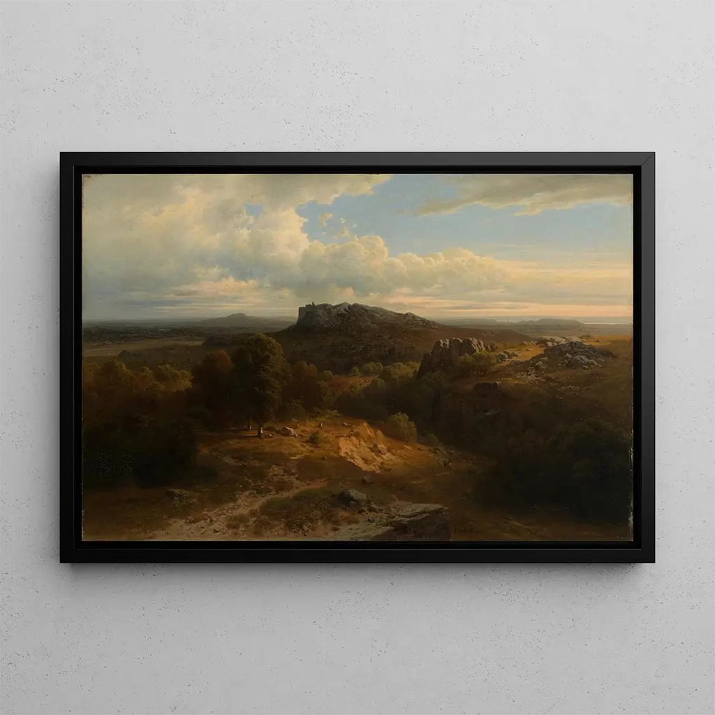 The Regenstein in the Harz, a captivating art print by Theodor Kotsch, transports us to a fairy-tale landscape where wild nature blends with medieval architecture. The rich and vibrant colors of this work evoke a mystical atmosphere, where every detail is carefully rendered. Kotsch, with his oil painting technique, manages to capture the light in a way that brings the scene to life. The shades of green in the trees contrast with the gray stones of the castle, creating a visual balance that draws the eye. This art print is a true invitation to explore the wonders of nature and history.