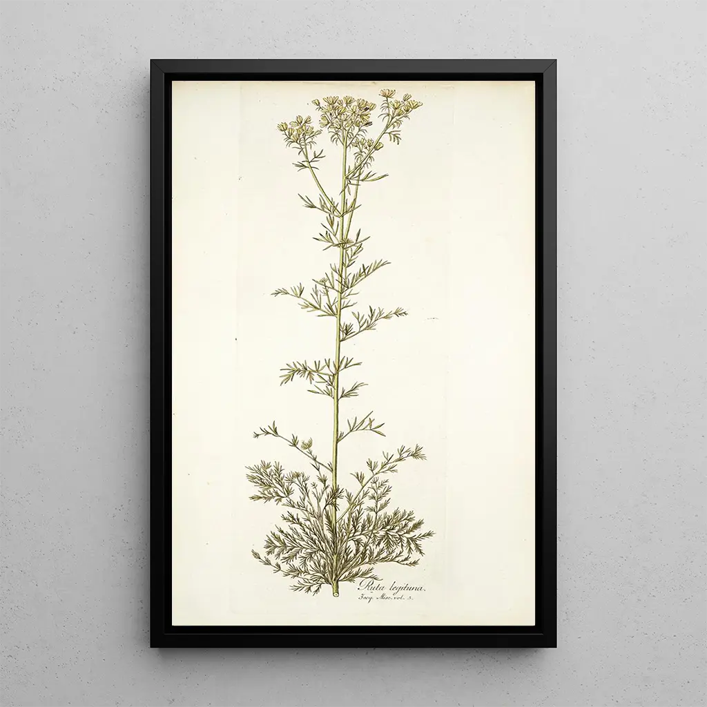 The art print of Ruta legitima is a decorative piece that will enhance your interior while adding a touch of nature. Whether in a living room, office, or bedroom, this artwork integrates harmoniously with various decorating styles. Its print quality and fidelity to the original work guarantee a captivating visual rendering. By choosing this canvas, you opt for a decoration that evokes both the beauty of botany and the history of medicinal plants. It is a piece that invites contemplation and serenity, enriching your living space.