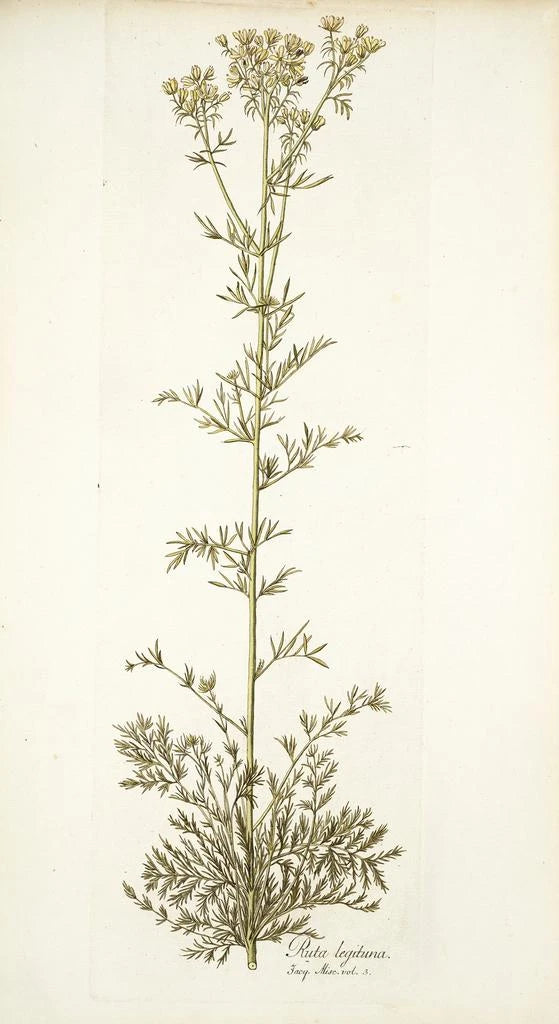 Nikolaus Joseph Freiherr von Jacquin, born in 1727, is recognized as one of the pioneers of botanical illustration in the 18th century. His travels in America and his in-depth studies of exotic plants enriched his knowledge and his work. Influenced by the scientific currents of his time, Jacquin was able to combine rigor and aesthetics, producing illustrations that are both works of art and valuable scientific documents. Ruta legitima, like his other creations, bears witness to his commitment to promoting knowledge of plants and their importance in traditional medicine.