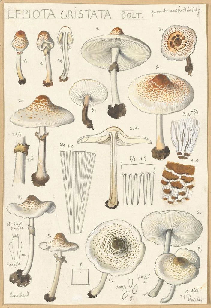 Hans Baldung, a prominent figure of the German Renaissance, established himself through his unique style and his ability to explore diverse themes. Active in the early 16th century, he was influenced by the great masters of his time, while developing a personal and innovative approach. Baldung is recognized for his works that blend mythological elements and representations of nature, as exemplified by his art print of Lepiota cristata. This piece illustrates his interest in botany and his desire to capture the beauty of the natural world, a concern that still resonates today in contemporary art.