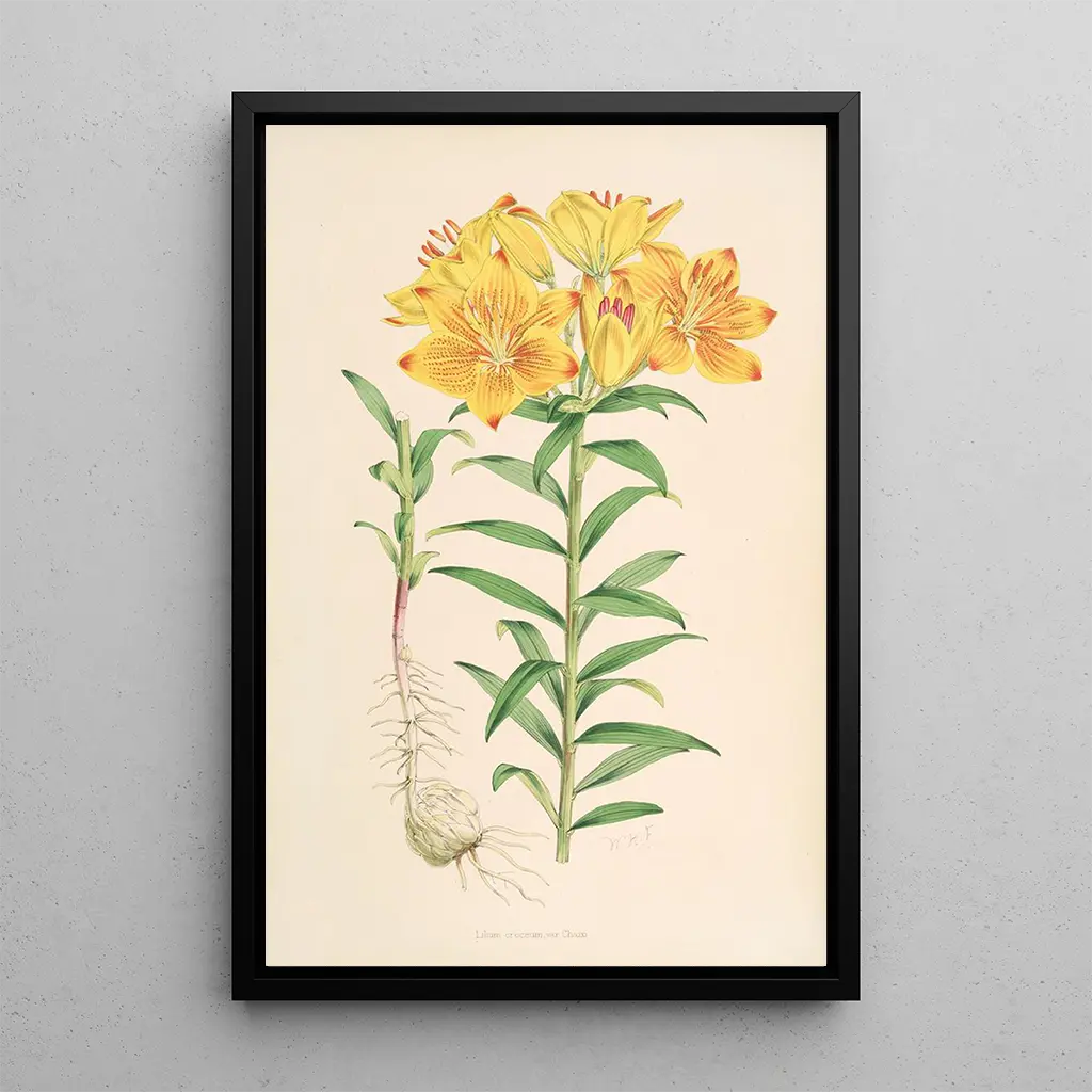The reproduction of Lilium Croceum is a valuable addition to any art collection, bringing a touch of color and vitality to your space. Whether in an office, a living room, or a bedroom, this canvas will captivate attention and inspire admiration. Its printing quality guarantees remarkable fidelity to the details of the original artwork, making this piece an ideal choice for botanical and art enthusiasts. Treat yourself to this art print to brighten your interior and celebrate the beauty of nature.