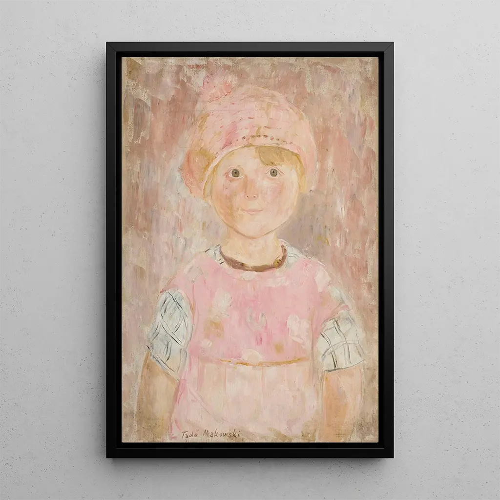 Dans cette œuvre délicate, Tadeusz Makowski capture l'innocence de l'enfance à travers le portrait d'une petite fille vêtue d'une robe et d'un bonnet roses. Les couleurs pastel, douces et chaleureuses, évoquent une atmosphère de tendresse et de sérénité. La composition met en avant le visage expressif de l'enfant, entouré d'un flou artistique qui renforce l'idée d'un monde de rêve. La technique de Makowski, mêlant peinture à l'huile et touches impressionnistes, crée une texture riche, invitant le spectateur à plonger dans l'univers délicat de cette jeune protagoniste.