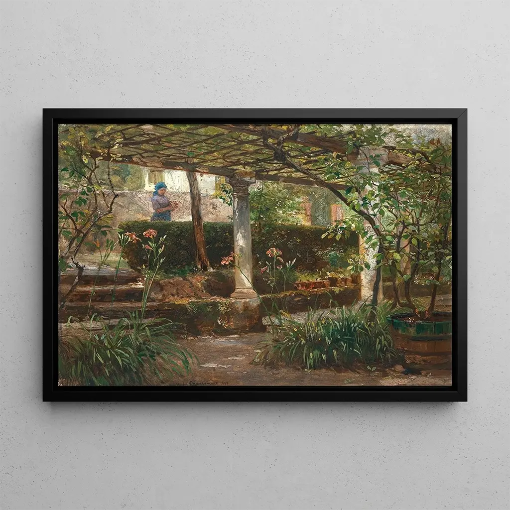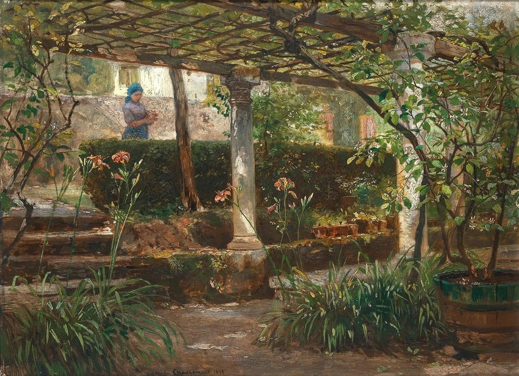 Hugo Charlemont, active in the late 19th century, is often associated with the Impressionist movement. Influenced by artists such as Monet and Renoir, he developed a unique style that highlights light and color. Charlemont mainly painted landscapes and scenes of everyday life, capturing the essence of nature with particular sensitivity. His work reflects the era, marked by a quest for artistic freedom and a fascination with light effects. The artwork "Tiger lilies on the south terrace" demonstrates this approach, blending technique and emotion.