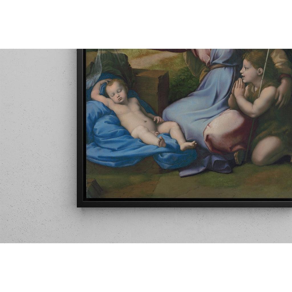 There Madonna in Blue Diademe - Raphael, carried out between 1500 and 1520, is an emblematic masterpiece which embodies the quintessence of the Renaissance. Raphael, an undisputed master of harmony and beauty, was able to capture the essence of divine serenity through this work. At a time when art evolved towards various shapes and styles, this piece is distinguished by its softness and its spatial innovation.