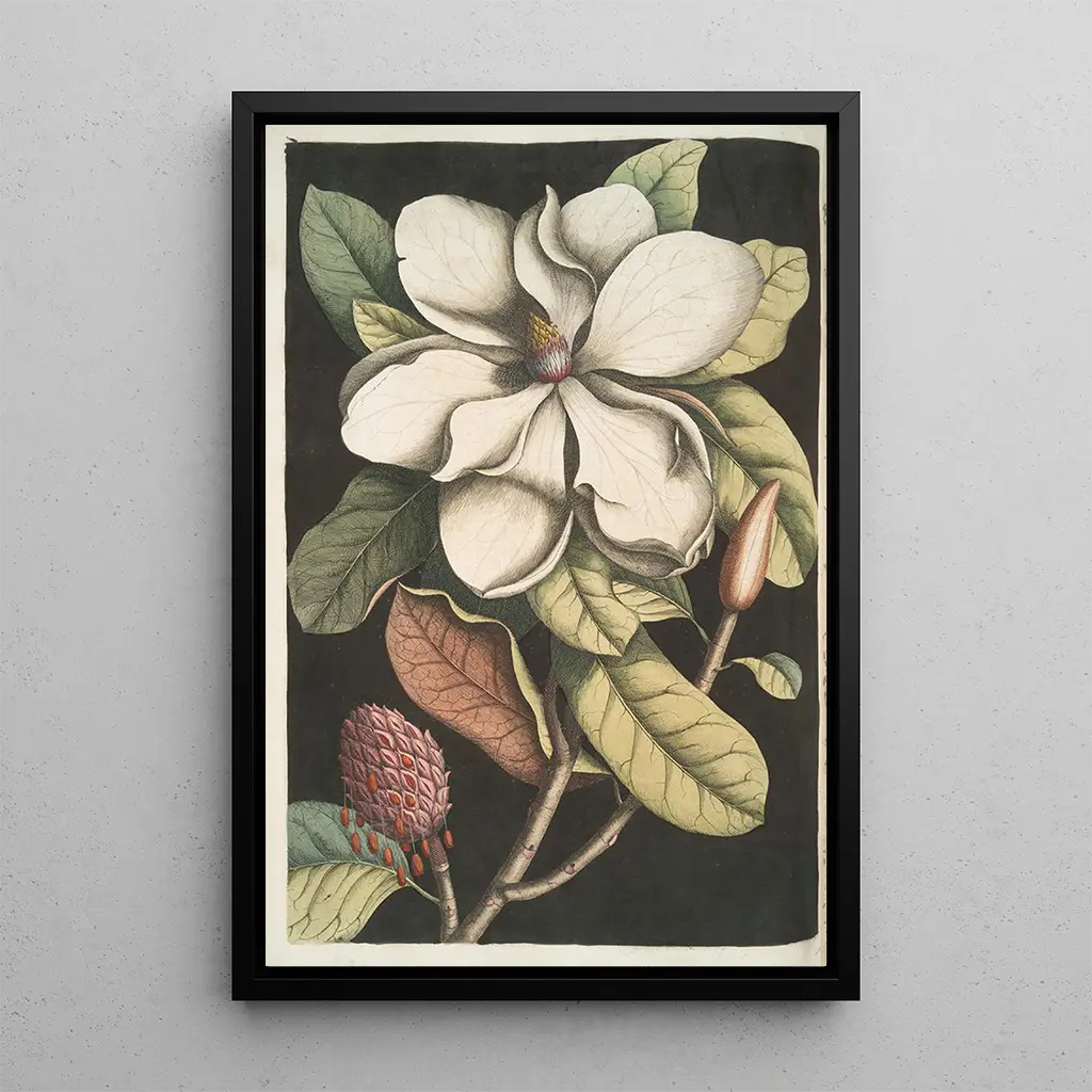 Mark Catesby, naturalist and artist of the 18th century, played a vital role in documenting American flora and fauna. His works, created during his travels in America, are characterized by a precise and scientific style, while maintaining artistic sensitivity. Catesby was influenced by European illustration traditions, but he managed to incorporate a unique vision of American nature. His work, including the art print of Magnolia altissima, is considered a milestone in the history of botanical art, blending science and aesthetics.