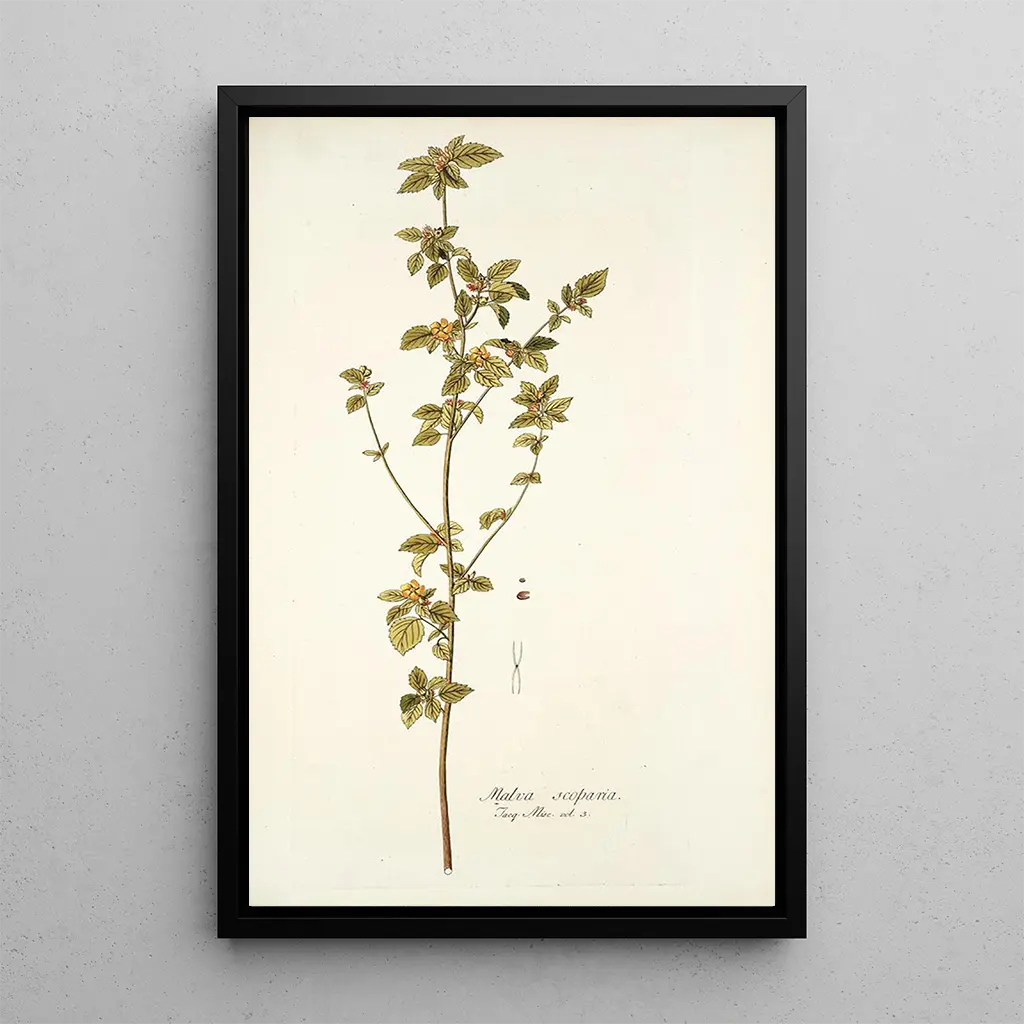The art print of Malva scoparia, created by Nikolaus Joseph Freiherr von Jacquin, invites us to explore the richness of wild flora. This delicate piece, where vibrant shades of violet and green intertwine, evokes a sense of freshness and vitality. The precision of the details, typical of watercolor, captures the lightness of the petals and the sturdiness of the stems. The atmosphere conveyed by this canvas is imbued with gentle melancholy, reminiscent of the ephemeral beauty of flowers. Each brushstroke reflects a deep love for nature and a desire to depict it faithfully.