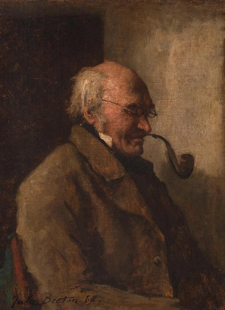In this iconic art print, Jules Breton captures a moment of tranquility where a man, lost in his thoughts, peacefully smokes his pipe. The warm, earthy colors dominate the canvas, creating an intimate and soothing atmosphere. The soft light illuminating the character's face highlights the details of his expression, revealing emotional depth. The composition, balanced and harmonious, invites the viewer to immerse themselves in this rural life scene, where time seems to stand still. Each brushstroke demonstrates the artist's technical mastery, paying homage to the simplicity and beauty of everyday life.