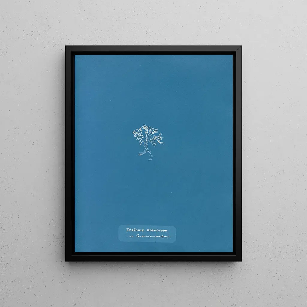 La singularité de "Diatomées marines sur Ceramium rouge" réside dans sa technique unique, qui allie le procédé du cyanotype à une composition délicate. En utilisant des algues marines comme support, Atkins crée une harmonie visuelle où les formes organiques se mêlent à des nuances de bleu profond et de rouge éclatant. Ce contraste saisissant attire immédiatement le regard et invite à une contemplation attentive. Les diatomées, ces micro-organismes d'une beauté insoupçonnée, sont ici mises en lumière avec une précision scientifique, tout en conservant une dimension esthétique indéniable. Chaque détail, chaque texture, est soigneusement rendu, témoignant d'une observation minutieuse et d'un respect profond pour la nature. L'œuvre ne se contente pas d'être une simple représentation ; elle devient une invitation à explorer les mystères de la vie aquatique.