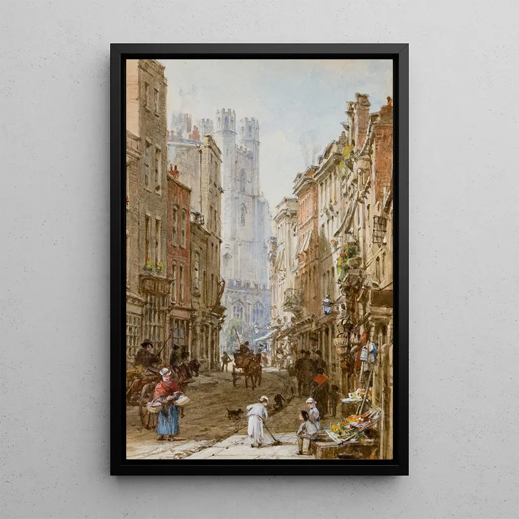 Market Street Cambridge, a captivating art print by Louise Rayner, vividly depicts the lively atmosphere of a bustling market in the heart of the city. The intricate details of the colorful stalls and passersby create a dynamic and warm ambiance. Rayner, through her mastery of light and shadow, brings this scene to life, where each character seems to tell a story. The vibrant hues and delicate watercolor nuances add an almost tactile dimension to the art print, inviting the viewer to immerse themselves in the animation of this iconic location.