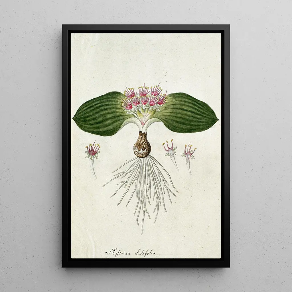 Massonia depressa Houtt: A delicate harmony of shapes and colors The art print of Massonia depressa Houtt immerses us in a floral universe filled with gentleness. The shades of green and white intertwine gracefully, creating a soothing atmosphere. Each petal seems to tell a story, while the intricate details reveal the artist's exceptional talent. The watercolor technique, used with finesse, captures the light and texture of the flowers, inviting the viewer to a peaceful contemplation. This painting, a true ode to nature, evokes the ephemeral beauty of plants, while offering a sense of freshness and renewal. Robert Jacob Gordon: a botanist explorer of the 18th century Robert Jacob Gordon, botanist and artist of the 18th century, knew how to blend science and art through his works. An unwavering traveler, he explored South Africa, documenting the local flora with remarkable precision. His influences range from European botanical traditions to exotic discoveries, allowing him to create works that transcend simple representations. Gordon played a key role in enriching botanical knowledge of his time, and his illustrations, such as that of Massonia depressa, have become references for scientists and artists. His legacy endures, testifying to the importance of meticulous observation of nature. A decorative acquisition with multiple assets Choosing the art print of Massonia depressa Houtt is opting for a canvas that will elegantly enhance your interior. Whether in a living room, office, or bedroom, this piece will bring a touch of freshness and serenity to your decor. Its printing quality guarantees fidelity to the colors and details of the original work, making this reproduction a true artistic jewel. The aesthetic appeal of this piece lies in its ability to harmoniously integrate into various decor styles, while inspiring admiration from your guests. By adding this piece to your collection, you invest in a timeless work of art.