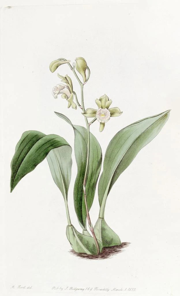 Sydenham Edwards, active in the early 19th century, is renowned for his contributions to botanical illustration. Influenced by the Romantic movement, he skillfully captured the diversity and beauty of plants with remarkable precision. His works, often published in botanical books, demonstrate his commitment to science and art. The Maxillaria with clustered flowers fits into a period when scientific illustration was gaining prominence, allowing a broad audience to appreciate the richness of the plant world. Edwards thus left a lasting legacy, combining aesthetics and knowledge.