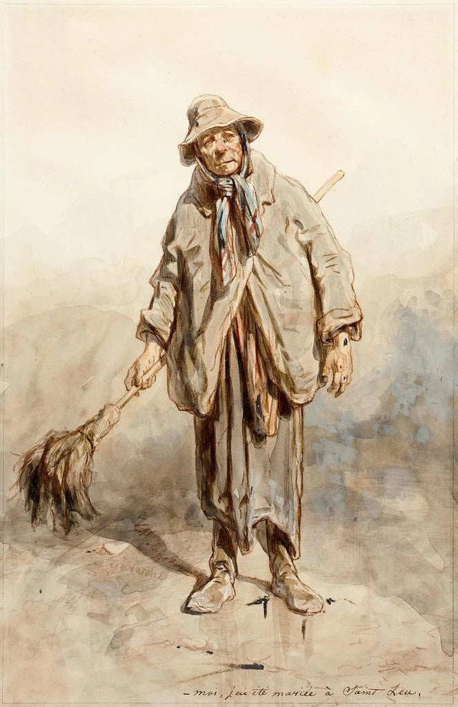 Paul Gavarni, born in 1804, is renowned for his talents as a caricaturist and illustrator, brilliantly capturing the customs of his time. Influenced by Romanticism and Realism, he depicted Parisian society with a critical and humorous eye. Gavarni worked for numerous publications, notably "Le Charivari," where his works achieved great success. His distinctive style, characterized by flowing lines and dynamic compositions, marked his era and continues to influence contemporary artists. "Moi j'ai été marié à Saint-Leu" fits perfectly within this tradition, offering a glimpse into social relationships and human interactions.