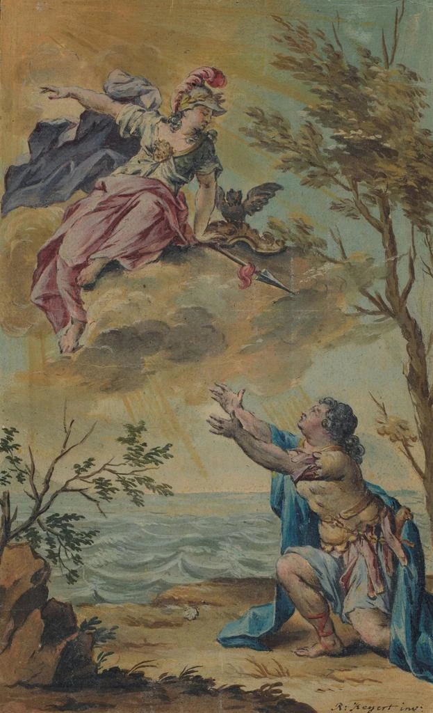 Mentor takes leave of Telemachus: a moment of emotional separation