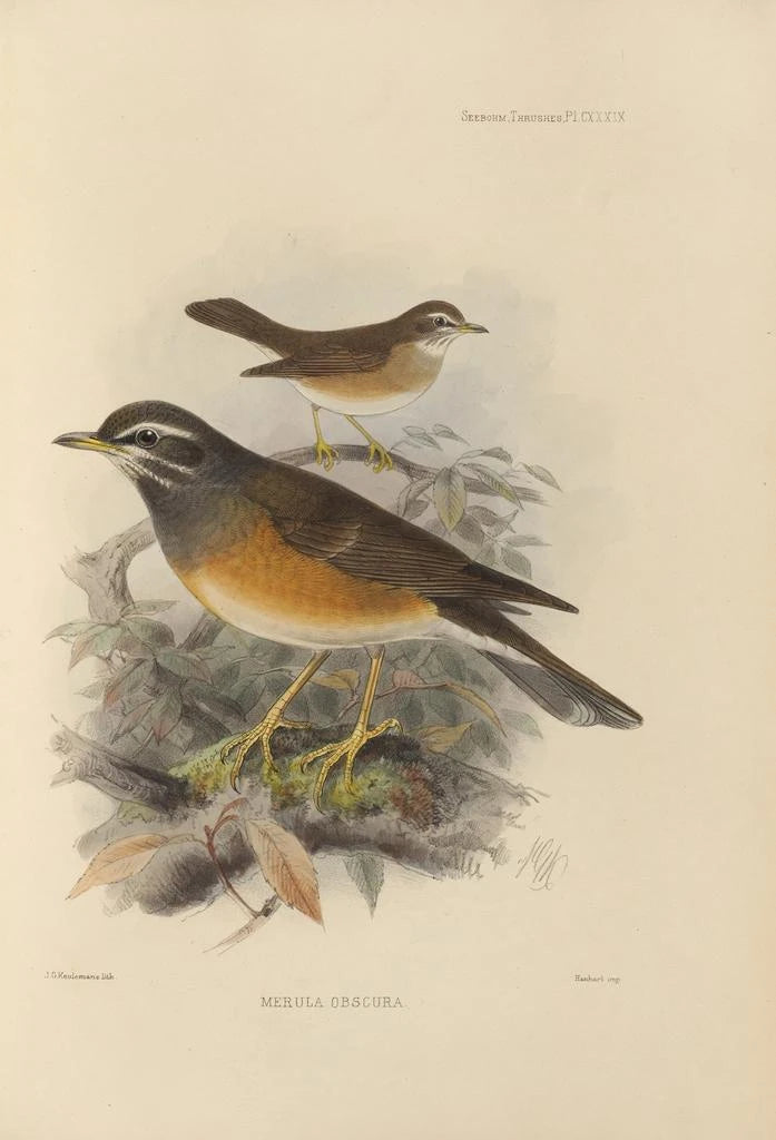 Henry Seebohm, 19th-century naturalist and ornithologist, skillfully combined his passion for birds with his artistic talent. Active during a time when the study of wildlife was gaining momentum, he was influenced by the naturalist currents of his era, seeking to represent the beauty of nature with precision. His works, including Merula Obscura, demonstrate his commitment to science and art. By capturing rare and often little-known species, Seebohm contributed to public education on biodiversity, while leaving a lasting artistic legacy.
