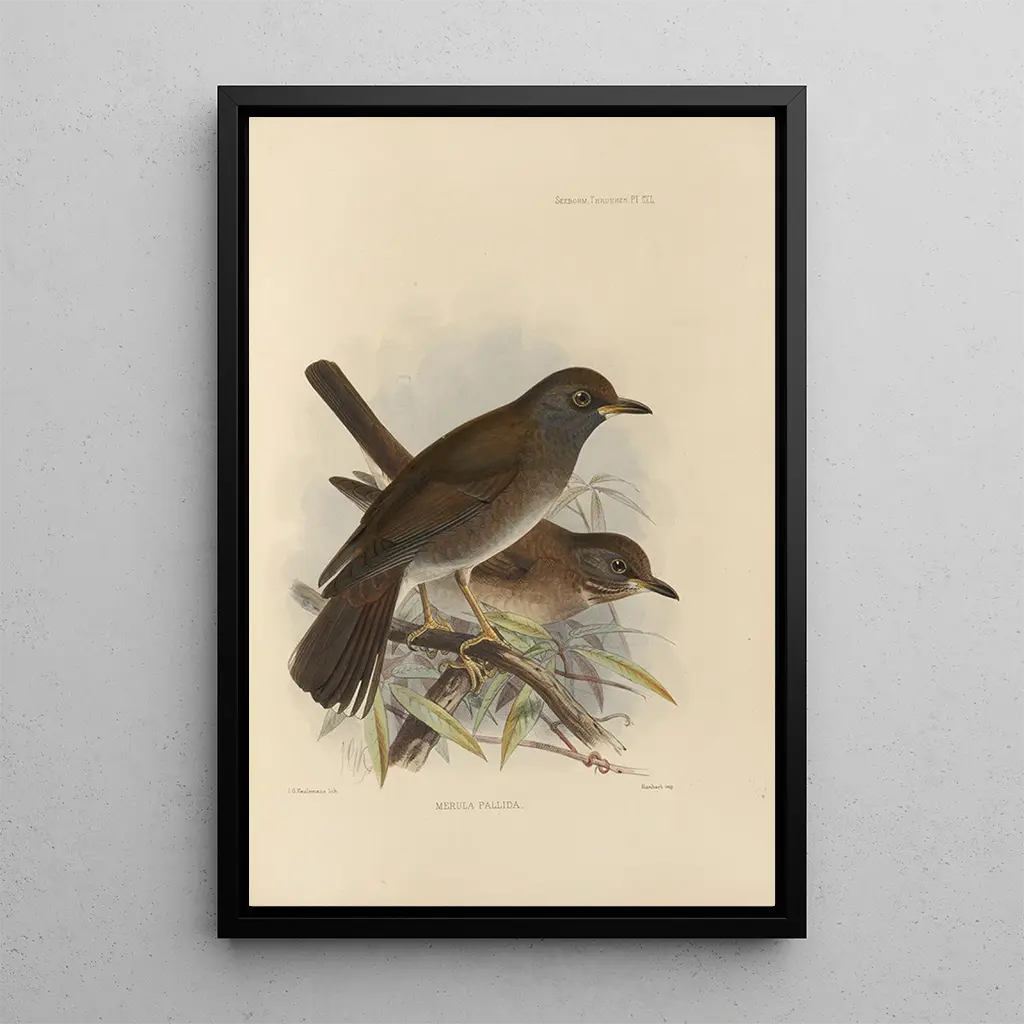 Merula Pallida : an ode to avian delicacy The art print of Merula Pallida transports us into a world where the lightness and grace of birds are highlighted. Henry Seebohm, through his skill, manages to capture the elegance of this bird with soft hues and a harmonious composition. The pastel colors blend delicately, creating a soothing atmosphere that invites escape. Each feather is rendered with care, and the viewer's gaze is drawn to the subtle beauty of this creature, thus revealing the magic of nature through art. Henry Seebohm : an artist at the crossroads of art and science Henry Seebohm, an emblematic figure of the 19th century, knew how to combine his love for ornithology with his artistic talents. Living in a time when scientific discoveries fascinated the world, he was influenced by naturalist movements that advocated meticulous observation of nature. His works, such as Merula Pallida, reflect this passion, offering a faithful representation of avian fauna. By documenting often forgotten species, Seebohm not only enriched the artistic field but also raised public awareness of the beauty and diversity of birds. A decorative acquisition with multiple assets Choosing an art print of Merula Pallida is choosing a decorative piece that will enhance your living space. Whether in a living room, office, or bedroom, this canvas adds a touch of softness and serenity. Its printing quality ensures remarkable fidelity to the details and colors of the original work, allowing you to fully enjoy its aesthetic. With its timeless charm, this art print adapts to all decoration styles, making it a valuable addition for art and nature enthusiasts.