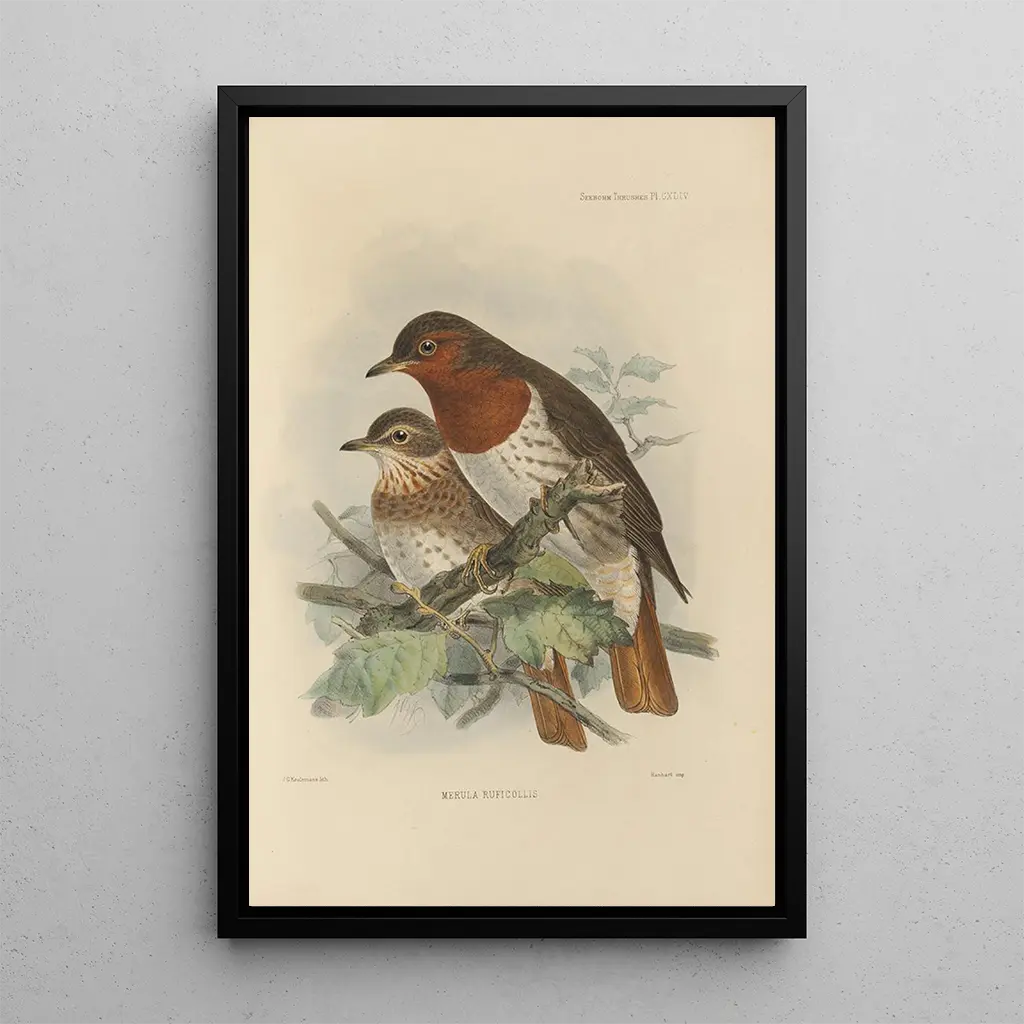 The art print of Merula Ruficollis is a perfect decorative choice to enhance your living space, whether in a living room, office, or bedroom. Its print quality and color fidelity make it a captivating piece that attracts attention and elicits admiration. Hung on a wall, this canvas adds a touch of nature and elegance, while creating a soothing atmosphere. Enrich your interior decor with this artwork that celebrates the beauty of the animal world.