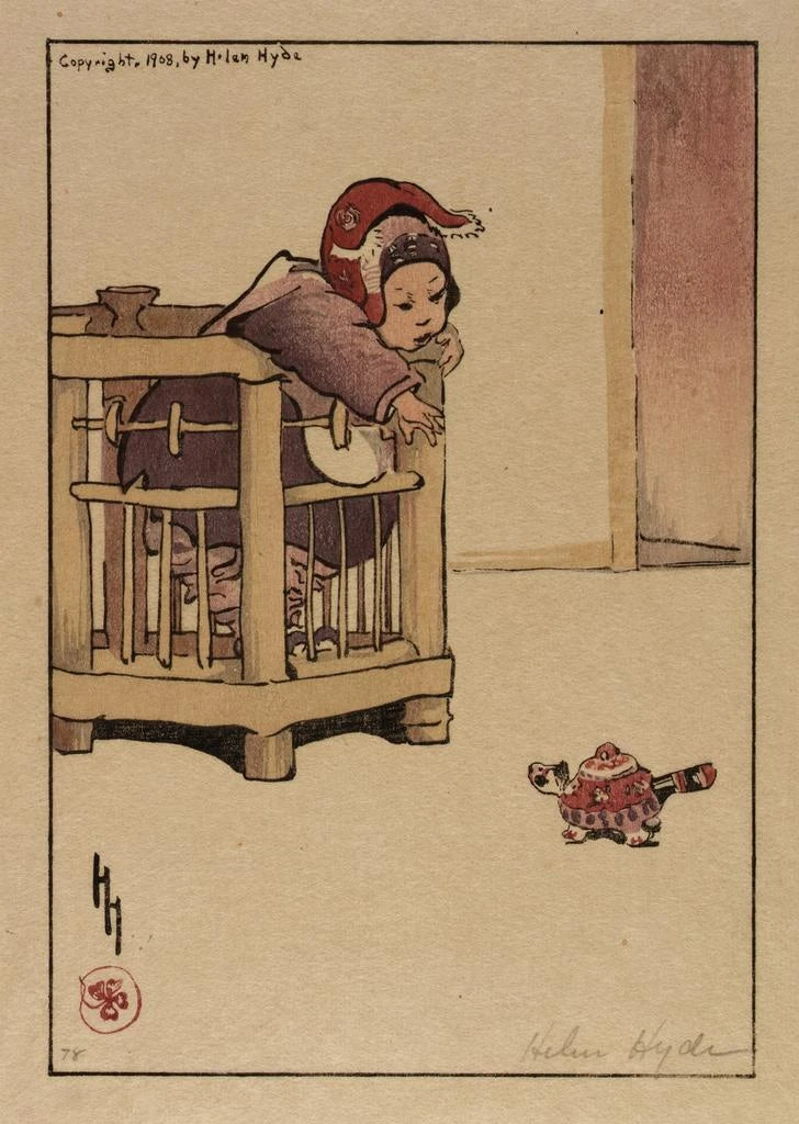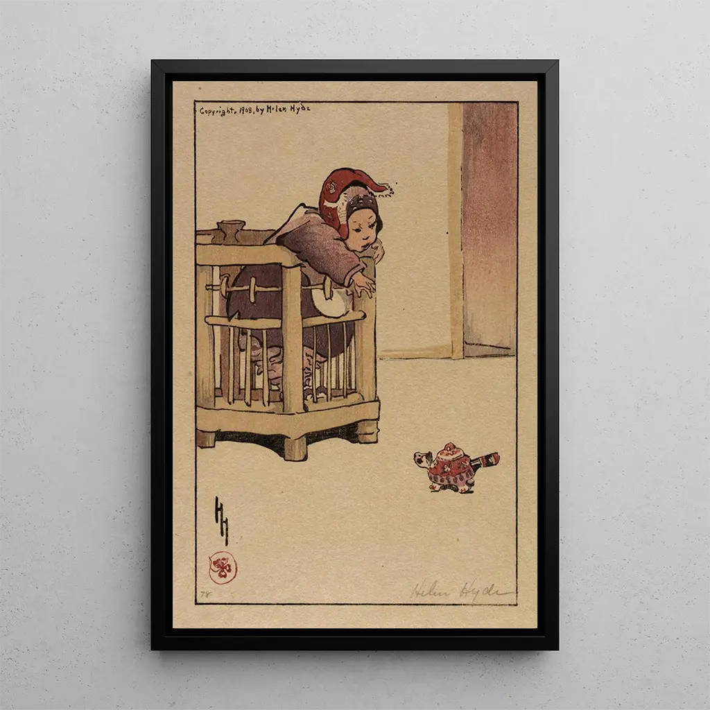 Mademoiselle Cloud of Apricot: a delicate dance under a pastel sky In this art print of Mademoiselle Cloud of Apricot, the artist Helen Hyde transports us to a universe filled with softness and lightness. The pastel colors, ranging from apricot shades to sky blue tones, create a soothing atmosphere. The watercolor technique, executed with finesse, brings the graceful silhouette of the young woman to life, wrapped in a delicate kimono. The composition, balanced and harmonious, invites a peaceful contemplation, where every detail seems to whisper a story of serenity and beauty. Helen Hyde: a pioneer of American art influenced by the Orient Helen Hyde, an American artist of the early 20th century, is recognized for her works inspired by Japanese culture. Born in 1868, she spent part of her life in Japan, where she was deeply influenced by local aesthetics and artistic traditions. Her style, characterized by floral motifs and scenes of daily life, reflects a unique fusion between the Orient and the West. Mademoiselle Cloud of Apricot fits into this period of her work where she explores femininity and beauty through delicate and poetic representations, thus leaving her mark in art history. A decorative acquisition with multiple assets The art print of Mademoiselle Cloud of Apricot is an ideal decorative piece to enhance your interior. Whether in a living room, office, or bedroom, this artwork adds a touch of elegance and serenity. Its printing quality guarantees remarkable fidelity to the colors and details of the original work, while offering undeniable aesthetic appeal. By choosing this canvas, you opt for a refined decoration that will captivate your guests and create a warm and welcoming atmosphere.