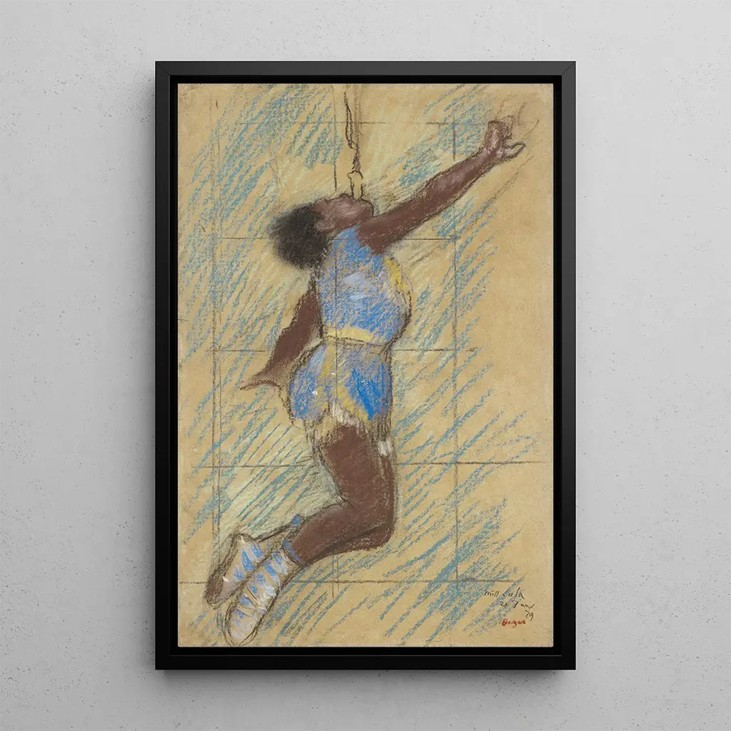 Edgar Degas, born in 1834, is often associated with the impressionist movement, although he developed a style that is uniquely his own, blending realism and innovation. His works, influenced by photography and japonism, explore various themes such as dance, circus, and everyday life. "Miss Lala at the Fernando Circus" is emblematic of his distinctive approach, where he manages to capture the essence of movement and emotion. This art print demonstrates his interest in artistic performances and his desire to depict the modernity of his era.
