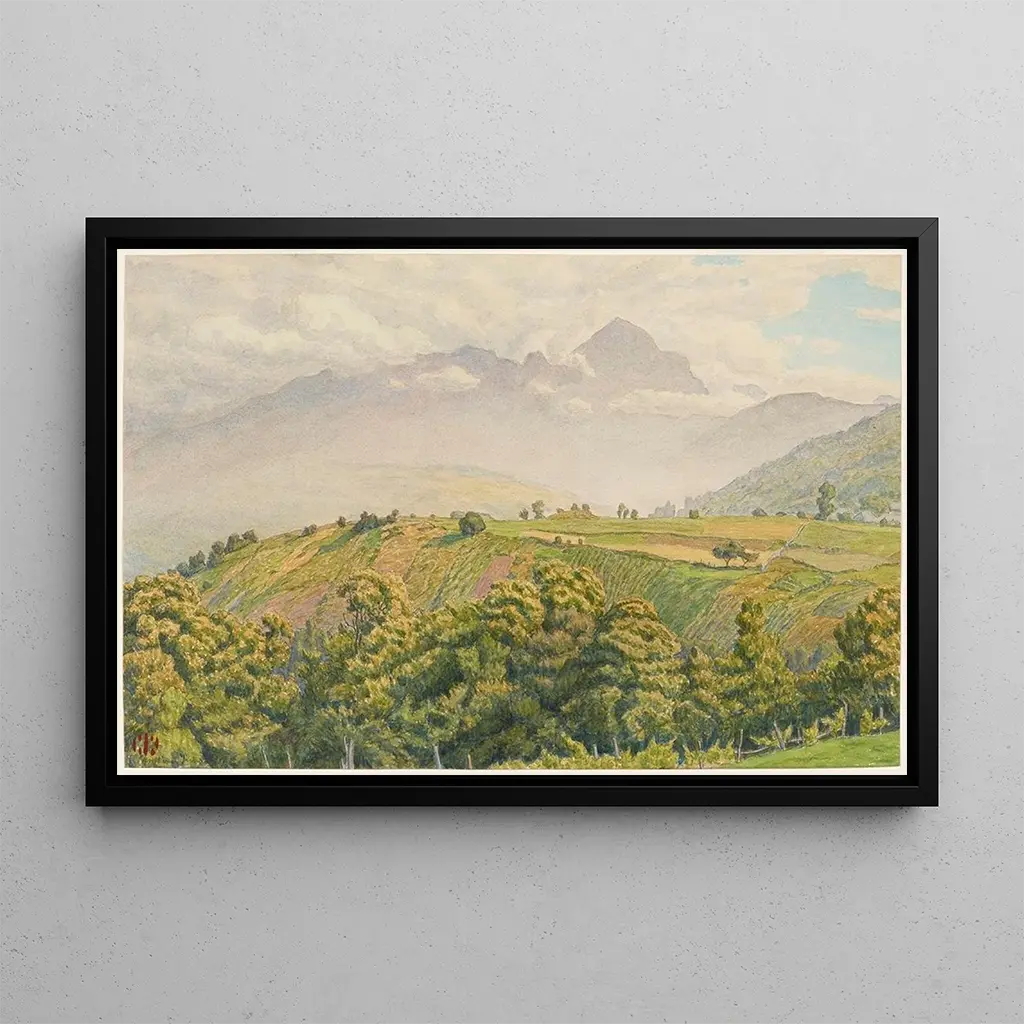 In this art print of Morning Mist on the Charvin, Henri Rivière transports us to the heart of a mountain landscape enveloped in gentle fog. The shades of blue and gray blend harmoniously, creating an atmosphere that is both serene and mysterious. The pastel technique, used with finesse, captures the diffuse light of dawn, while the blurred contours of the mountains add an ethereal dimension to the work. Rivière, a true poet of nature, invites us to contemplate this fleeting moment when day breaks, revealing the wild beauty of the Alps.