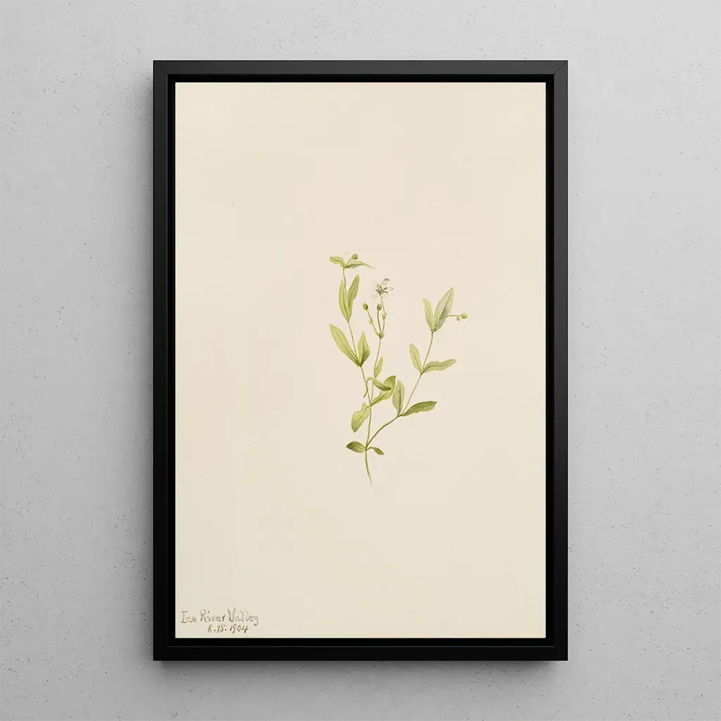 Moehringia laberiflora : a delicate floral harmony The art print of Moehringia laberiflora, created by Mary Vaux Walcott, evokes a fragile and ephemeral beauty. This piece, rich in detail, captures the finesse of the petals and the delicacy of the leaves, all bathed in soft light. The pastel colors, ranging from tender green to pure white, create a calming, almost contemplative atmosphere. The watercolor technique allows the artist to play with transparency, offering a sensation of lightness and fluidity. Each brushstroke seems to dance on the paper, inviting the viewer to immerse themselves in the delicate universe of this plant. Mary Vaux Walcott : pioneer of botanical art Mary Vaux Walcott is an iconic figure in early 20th-century botanical art. Born in 1860, she dedicated her life to the study and representation of American plants, becoming a pioneer in her field. Influenced by the artistic movements of her time, she mastered the balance between scientific accuracy and artistic sensitivity. Her works, often created during her travels in national parks, testify to her commitment to conservation. Walcott also played a crucial role in promoting botany, making her paintings educational tools while celebrating the beauty of flora. A decorative piece with multiple virtues The art print of Moehringia laberiflora is a decorative item that will enhance any space, whether a living room, office, or bedroom. Its print quality and color fidelity make it an ideal choice to bring a touch of nature into your interior. In addition to its aesthetic appeal, this canvas offers a serene atmosphere, conducive to relaxation and contemplation. By choosing this piece, you opt for a painting that not only beautifies your decor but also tells a story of passion for botany and natural beauty.