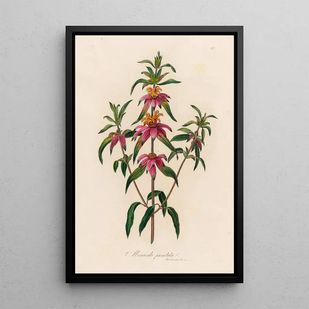 Monarda punctata : a dance of floral colors The art print of Monarda punctata, a work by Gaetano Savi, immerses us in a vibrant floral world. This canvas highlights the richness of hues, from shades of pink to bursts of yellow, creating a captivating visual harmony. Savi's technique, which combines botanical precision with artistic expression, allows us to feel the lightness of the petals and the vibrancy of the leaves. Every element of this composition seems to dance under the light, inviting the viewer to appreciate the fleeting beauty of nature. Gaetano Savi: an artist dedicated to botany Gaetano Savi, active in the 19th century, is renowned for his major role in botanical illustration. His passion for nature and his desire to depict it faithfully led him to create works that blend scientific rigor with artistic sensitivity. Influenced by the naturalist movement, Savi captured the diversity of plant species with meticulous attention. The art print of Monarda punctata perfectly illustrates his talent, demonstrating his commitment to documenting flora and his unique aesthetic. A decorative acquisition with multiple advantages Choosing the art print of Monarda punctata is to enrich your living space with a piece that exudes vitality. Whether in a living room, office, or bedroom, this artwork adds a touch of freshness and color. Its printing quality ensures remarkable fidelity to the details of the original work, while offering undeniable aesthetic appeal. This canvas is ideal for those who wish to create a joyful and inspiring atmosphere, while celebrating the beauty of nature through art.