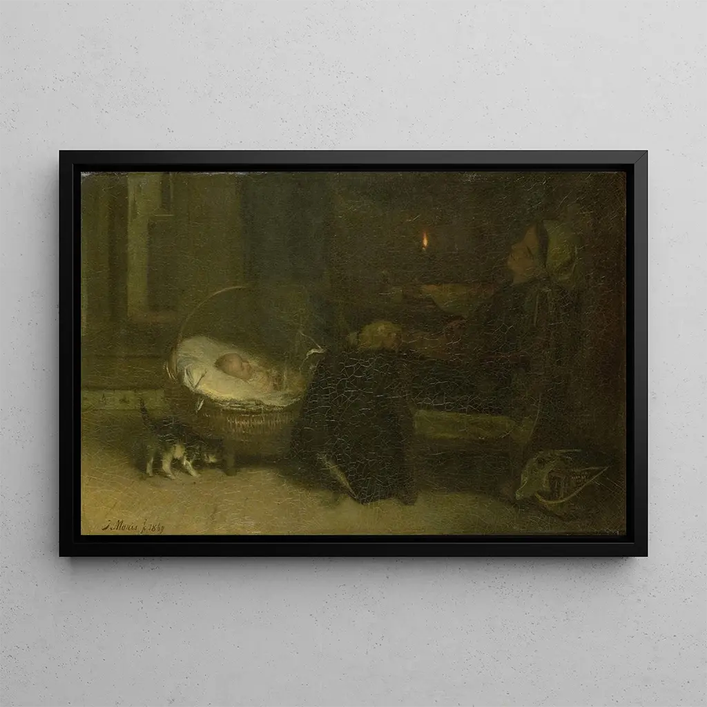 Out of Stock Mother Watching Over: a captured tenderness The art print of Out of Stock Mother Watching Over, a work by Jacob Maris, evokes an intimate and emotional scene where a mother's fatigue blends with the unconditional love she bears for her child. The soft colors and pastel shades create a warm atmosphere, while the delicate light highlights the peaceful features of the mother. Maris's technique, characterized by fluid brushstrokes, brings this touching scene to life, inviting the viewer to feel the depth of this tender moment. Jacob Maris: a master of genre scenes Jacob Maris, a Dutch painter of the 19th century, is famous for his depictions of everyday life and landscapes. Evolving within the Impressionist movement, he captured moments of life with a unique sensitivity. Influenced by artists such as Vincent van Gogh, Maris developed a style that combines realism and impressionism, emphasizing human emotions. His work, rich in detail and color, reflects the importance of family relationships and simple moments of life, making him an essential artist of his time. A decorative acquisition with multiple assets The art print of Out of Stock Mother Watching Over is a decorative choice that adds a touch of softness and warmth to your interior. Whether in a child's room, a living room, or an office, this canvas will create a soothing and comforting atmosphere. Its printing quality guarantees fidelity to the original work, while offering undeniable aesthetic appeal. By incorporating this piece into your decor, you add an emotional dimension to your space, while celebrating the beauty of human relationships through art.