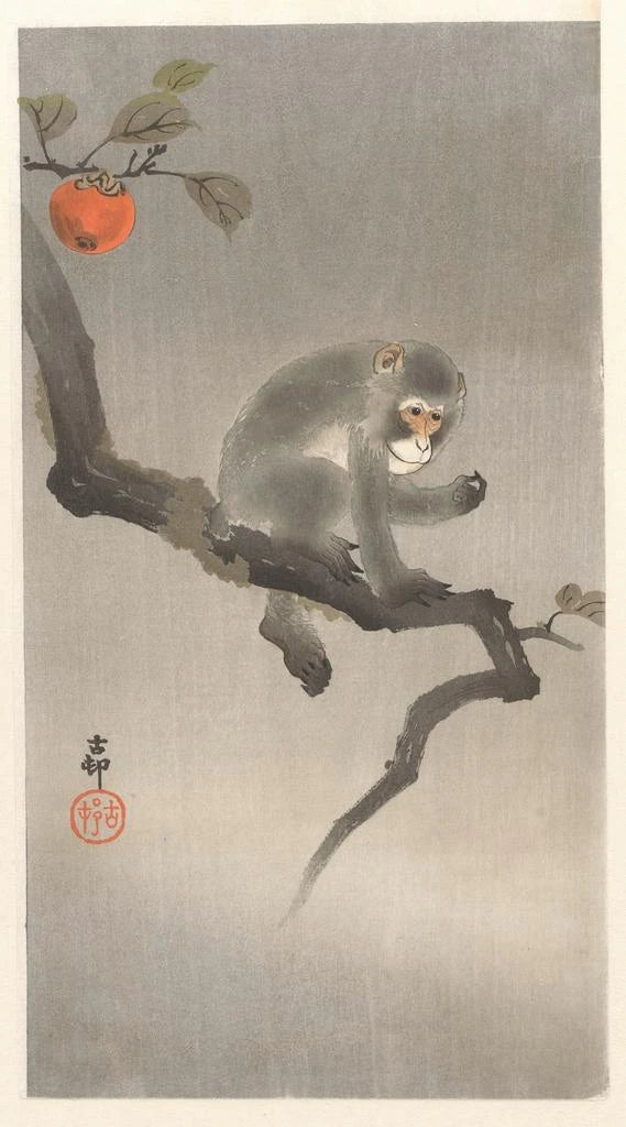 Art print | Monkey in a persimmon tree - Ohara Koson