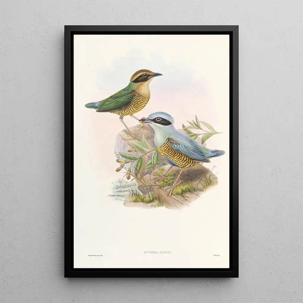 John Gould, a 19th-century British naturalist and illustrator, is recognized as one of the greatest ornithologists of his time. His work is set in a period when scientific and artistic exploration converged, enabling the documentation of wildlife in an unprecedented way. Influenced by discoveries of his era, Gould traveled around the world, collecting specimens and creating illustrations that have left a mark on the history of art and science. His works, including the art print Monograph of the Pittidae, testify to his commitment to capturing the beauty of nature while contributing to ornithological knowledge.