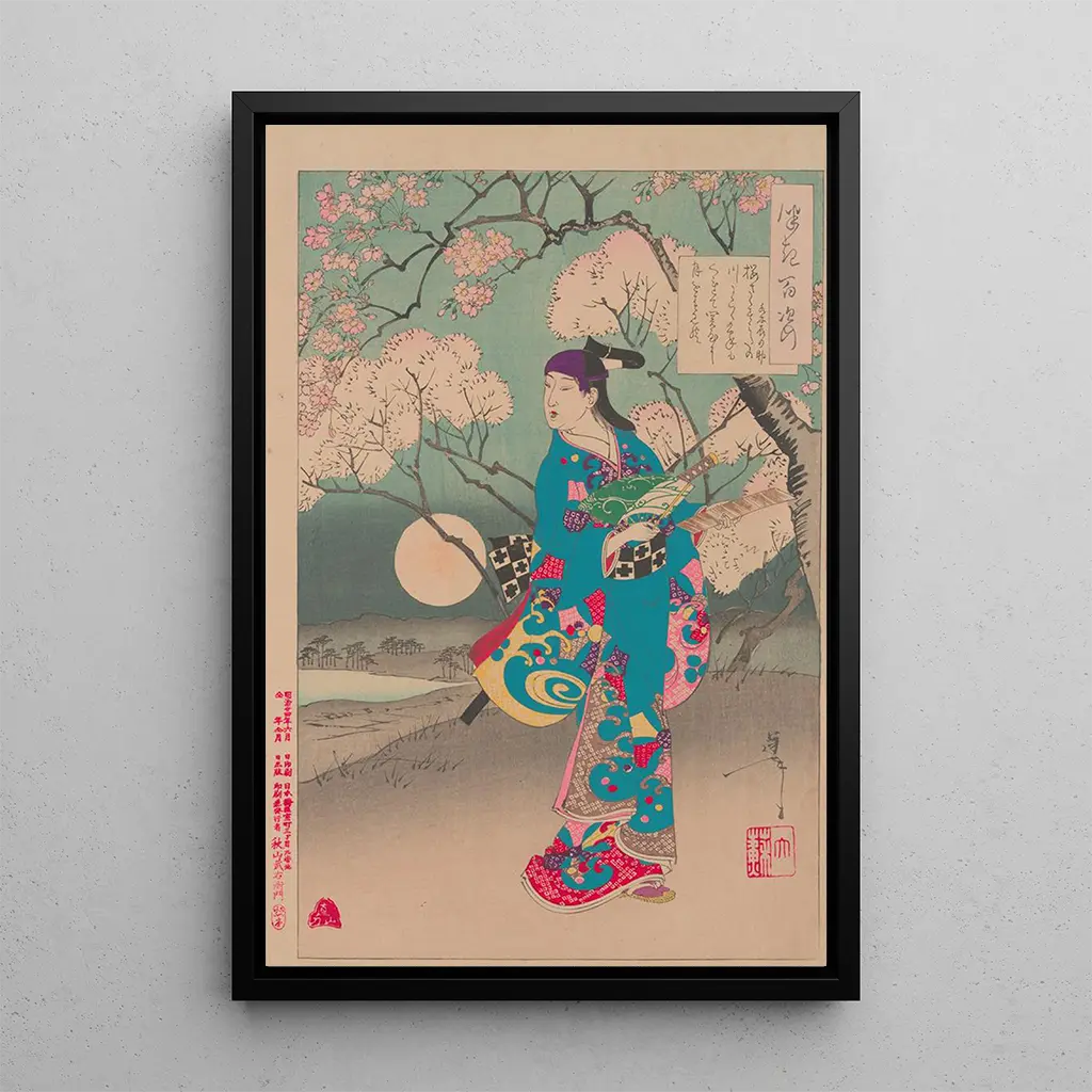 Moon over the Sumida River: an ephemeral beauty art print The art print of Moon over the Sumida River transports us to a nocturnal scene where the moonlight dances on the calm waters of the river. Tsukioka Yoshitoshi, with his mastery of ukiyo-e, manages to capture the magic of this fleeting moment. The silvery and bluish hues create a serene atmosphere, while the details of the boats and surrounding landscapes add depth to the composition. This work evokes the ephemeral beauty of nature, inviting the viewer to contemplate the tranquility of a Japanese night. Tsukioka Yoshitoshi: a pioneer of Japanese artistic renewal Tsukioka Yoshitoshi, active during the second half of the 19th century, is recognized as one of the last great masters of ukiyo-e. His work stands out for an innovative approach, blending tradition and contemporary influences. At a time when Japan was opening to the world, Yoshitoshi captured social changes while preserving the essence of Japanese art. Moon over the Sumida River perfectly illustrates his talent for depicting scenes of everyday life with poetic sensitivity, making him an essential figure in the history of Japanese art. A decorative acquisition with multiple assets The art print of Moon over the Sumida River is a valuable addition to your interior decor, whether modern or traditional. This print, with its exceptional print quality, offers remarkable fidelity to the nuances and details of the original work. By displaying it in your living room, office, or bedroom, you bring a touch of elegance and serenity to your space. This canvas, both aesthetic and evocative, will captivate your guests and enrich your environment with a peaceful and contemplative atmosphere.