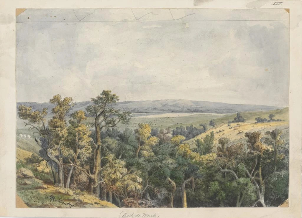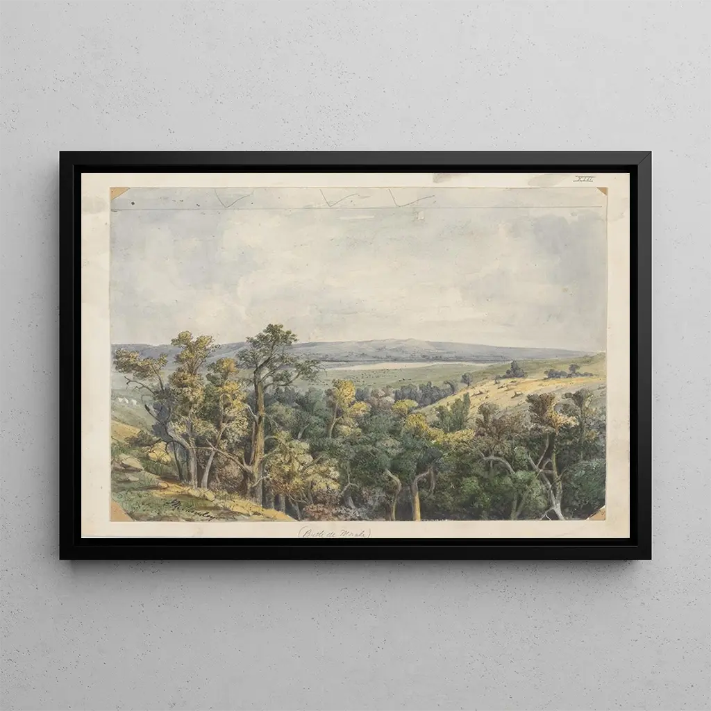 The art print "Butte de Morale" by John Mix Stanley immerses us in an enchanting landscape, where the beauty of nature flourishes in a palette of vibrant colors. The shades of green, blue, and earth intertwine to create an atmosphere that is both serene and dynamic. The composition, rich in detail, invites the viewer to explore every corner of the painting, revealing elements of fauna and flora that evoke a deep connection with the land. The use of light and shadows enhances the scene's depth, making the visual experience even more immersive.