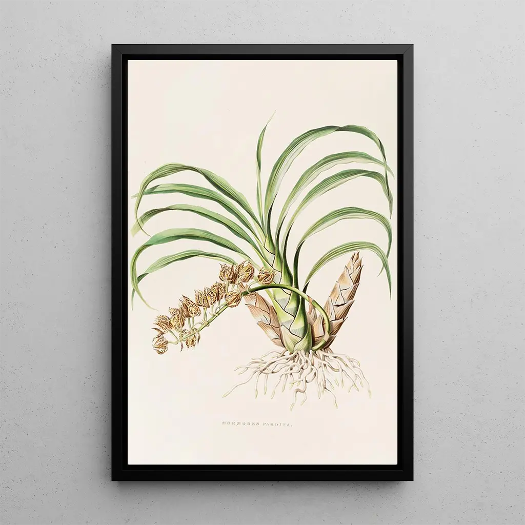 Mormodes Pardina : an explosion of color and mystery The art print of Mormodes Pardina, created by James Bateman, transports us into a rich floral world full of colors and textures. The vibrant shades of yellow and red blend boldly, creating a captivating and mysterious tableau. The watercolor technique captures the depth of colors and the delicacy of the forms, bringing each petal to life. This piece evokes a sense of exoticism and wonder, as if discovering a rare flower in a secret garden. The atmosphere it exudes invites escape and daydreaming. James Bateman : an artist at the crossroads of science and art James Bateman, a prominent figure of the 19th century, skillfully combined his love for botany with his artistic talent. His works, including the Mormodes Pardina, reflect an era when the exploration of exotic plants fascinated minds. Influenced by the Victorian movement, he highlighted the beauty of rare species while contributing to botanical knowledge through his writings. Bateman thus left an artistic and scientific legacy, making him a pioneer in the representation of flowers. His work continues to inspire art and botany enthusiasts. A decorative acquisition with multiple assets The art print of Mormodes Pardina is a decorative piece that will enhance your living space, whether in a living room, office, or bedroom. Its print quality ensures color fidelity and detail, offering a refined aesthetic. This canvas, with its brilliance and visual richness, adds a touch of exoticism and warmth to your interior. By choosing this piece, you add not only a unique decoration but also a work that evokes harmony between art and nature.