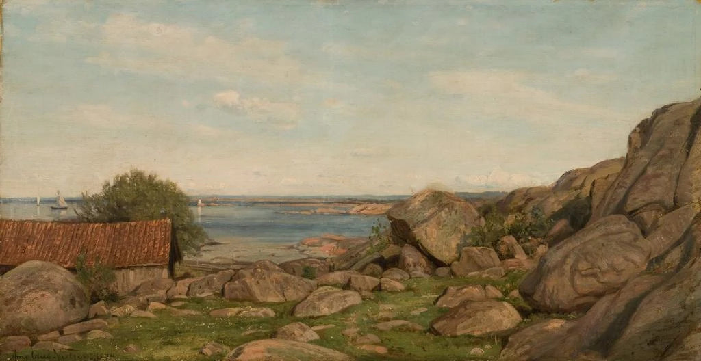 "Morning Atmosphere Hvaler" by Amaldus Nielsen evokes the gentle calm of a peaceful morning on the Hvaler Islands, in Norway. The canvas depicts a seascape where the reflections of the rising sun dance on the calm waters, creating an atmosphere of tranquility. The pastel colors, ranging from soft pink to gentle blue, blend harmoniously, bringing a sense of warmth and serenity. Nielsen's impressionist technique captures the fleeting essence of this moment, inviting the viewer to immerse themselves in this idyllic scene and feel the magic of a new day beginning.