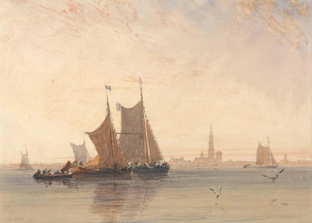 In this art print of Morning in Antwerp, David Cox transports us to the heart of a peaceful scene, where the morning light delicately caresses the historic buildings. The pastel shades blend harmoniously, creating a serene atmosphere. The watercolor technique, with its subtle nuances, captures the morning mist enveloping the city. The reflections on the water add a poetic dimension, inviting the viewer to immerse themselves in this moment suspended in time. Every detail, from the sails of the boats to the silhouettes of passersby, contributes to the authenticity of this canvas.