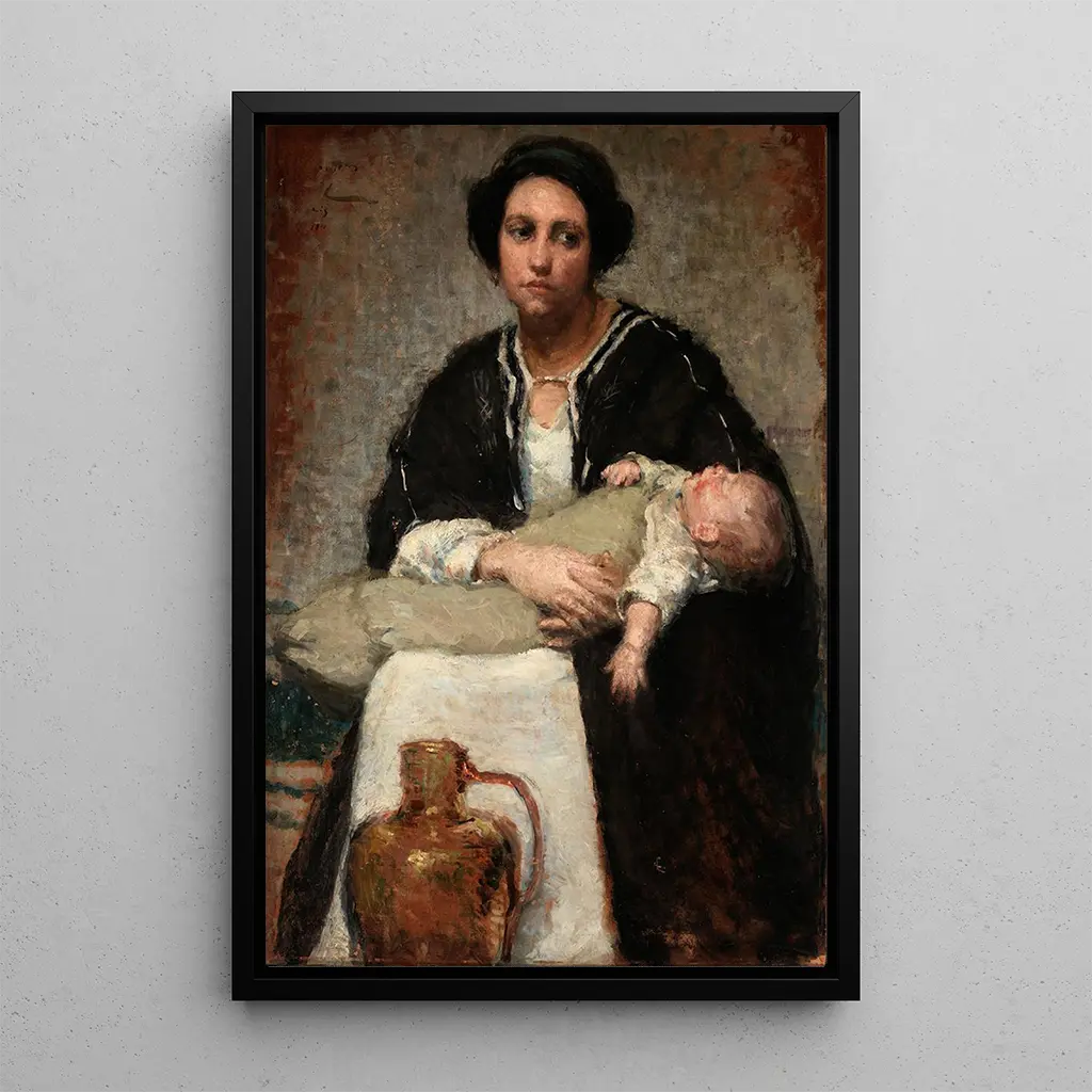 Mother and Baby Sleeping: a tenderness captured in time "Mother and Baby Sleeping" by Alice Pike Barney is a touching work that illustrates the beauty of family bonds. This painting, created with remarkable delicacy, depicts a mother tenderly watching over her sleeping child. The soft colors and rounded shapes create an atmosphere of peace and security. The gentle light enveloping the characters enhances the feeling of warmth and intimacy. Barney succeeds in immortalizing a fleeting moment of tenderness, inviting each viewer to feel the unconditional love of a mother for her child. Alice Pike Barney: a female voice in American art Alice Pike Barney, born in 1857, was a pioneer in an art world dominated by men. Active at the end of the 19th century, she established herself through her impressionist style and her commitment to the representation of women in art. Influenced by European artistic movements, she created works that combine intimacy and modernity. "Mother and Baby Sleeping" reflects her talent for capturing everyday moments while highlighting human emotions. Her work paved the way for other female artists and enriched the American artistic landscape. A decorative acquisition with multiple assets The art print of "Mother and Baby Sleeping" is a decorative piece that will bring a touch of softness and serenity to your interior. Whether in a living room, a child's bedroom, or an office, this artwork will create a warm and welcoming atmosphere. The quality of the reproduction ensures fidelity to the details and colors of the original work, allowing you to fully appreciate Alice Pike Barney's sensitivity. By choosing this canvas, you give your space a note of elegance and tenderness, while paying tribute to an exceptional artist.