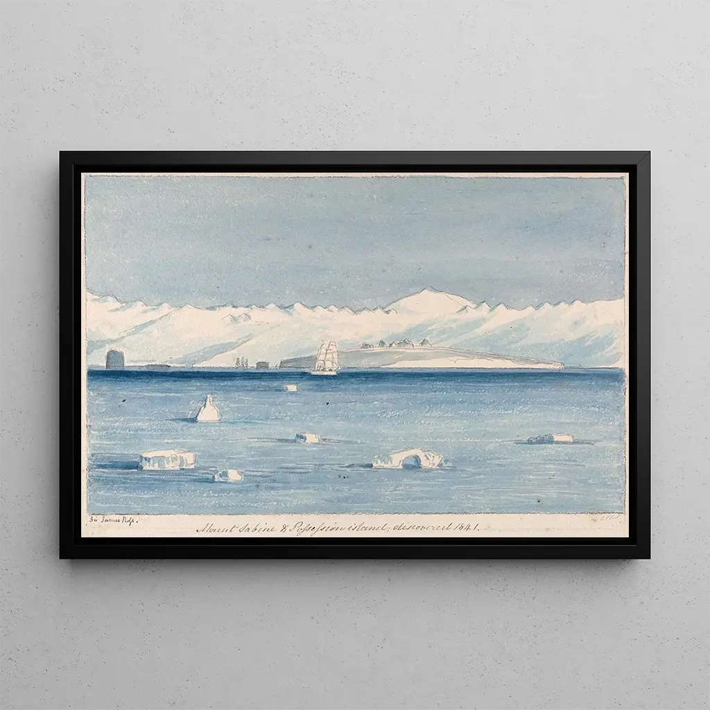 "Mont Sabine, Possessions Island" is a captivating art print by Charles Hamilton Smith that immerses us in the heart of a majestic marine landscape. This piece, rich in detail, depicts a scene where wild nature blends with the tranquility of the waters. The shades of deep blue and emerald green evoke the richness of the seabed, while the touches of white illustrate the waves gently caressing the shores. Smith's technique, combining precision and sensitivity, creates an atmosphere that is both serene and dynamic, inviting the viewer to explore this distant island and its mysteries.