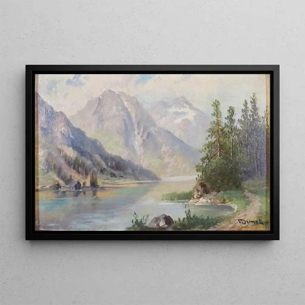 Mountain Lake: a reflection of natural serenity The painting Mountain Lake by Franz Demel evokes a peaceful atmosphere, where nature reveals itself in all its splendor. The soft shades of blue and green blend harmoniously, creating an idyllic landscape. Demel's technique, characterized by delicate brushstrokes, brings the water's surface to life, while the majestic mountains rise in the background, bathed in gentle light. This artwork invites contemplation, offering a moment of respite away from the hustle and bustle of everyday life. Franz Demel: a master of romantic landscape painting Franz Demel, active in the early 20th century, is renowned for his enchanting landscapes that capture the essence of nature. Influenced by the Romantic movement, he follows a tradition where the beauty of natural scenery is emphasized. His works, often inspired by the Alps, demonstrate a particular sensitivity to light and color. Demel managed to marry realism and poetry, creating paintings that resonate with human emotions. His artistic legacy endures, inspiring many contemporary artists to explore the beauty of the natural world. A decorative acquisition with multiple advantages The art print of the Mountain Lake painting is an ideal choice to enhance your interior, whether in a living room, office, or bedroom. Its printing quality guarantees remarkable fidelity to the colors and details of the original work, adding a touch of elegance and serenity to your space. This artwork, a true ode to nature, draws the eye and invites dreaming. By incorporating this canvas into your decor, you create a soothing atmosphere, conducive to relaxation and escape.