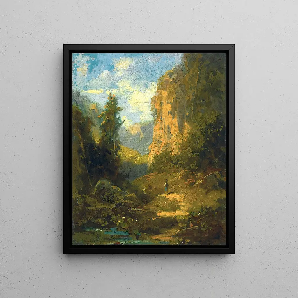 The "Mountain Landscape" art print by Carl Spitzweg transports us to a world where nature reveals itself in all its splendor. This piece, emblematic of German Romanticism, evokes a deep serenity, inviting the viewer to contemplate the harmony between man and his environment. Observing this mountainous scene, one feels an intimate connection with the Alpine landscapes, where every detail seems to breathe tranquility. The soft light bathing the canvas, along with the delicate nuances of color, creates an almost dreamlike atmosphere. This art print of "Mountain Landscape - Carl Spitzweg" offers a unique opportunity to immerse oneself in the poetical universe of the artist, while adding a touch of elegance to any interior.