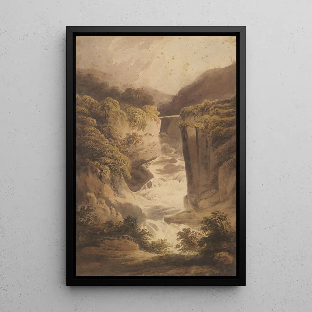 In "Torrent de montagne," Francis Nicholson transports us to the heart of a majestic landscape, where the force of the water unleashes with striking intensity. The vivid colors and dynamic brushstrokes evoke the tumultuous movement of the torrent, while the imposing mountains in the background add a sense of grandeur to the scene. Nicholson's technique, blending impressionism and realism, creates an atmosphere that is both dramatic and soothing, inviting the viewer to feel the wild beauty of nature. Every detail, from water splashes to reflections on the rocks, contributes to the immersion in this natural environment.