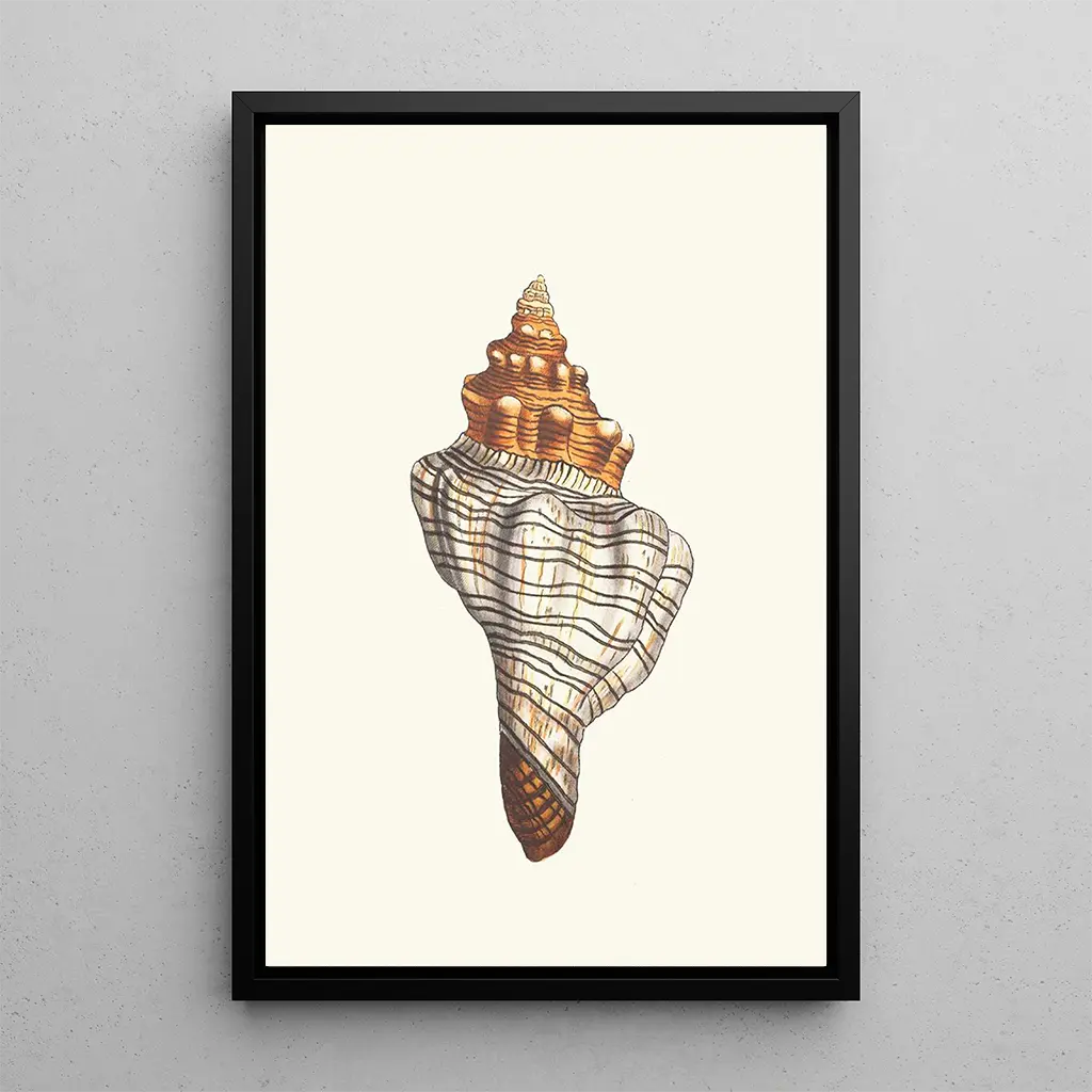 The art print Murex trapezoid by George Shaw immerses us in the fascinating world of marine mollusks. With delicate shades of beige and pink, this piece evokes the fragile beauty of underwater life. Shaw, through his meticulous technique, captures the striking details of the shell, paying tribute to the complexity of nature. The atmosphere conveyed by this canvas is both soothing and intriguing, inviting the viewer to explore the mysteries of oceanic depths. Every curve and every striation of the shell seem to tell a story, an ode to biodiversity.
