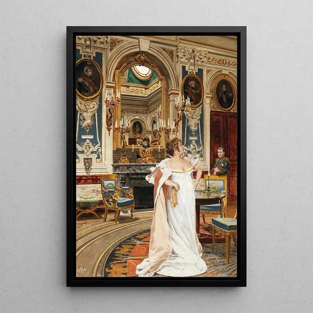 Napoléon and Joséphine: a love infused with power and passion In this captivating art print, Oskar Rex depicts Napoleon and Joséphine in a moment of intimacy, where rich colors and meticulous details evoke an atmosphere of grandeur and romance. The golden hues and shades of blue create a striking contrast, emphasizing the majesty of the figures. The oil painting technique allows for textures of clothing and faces to be rendered with remarkable precision, immersing the viewer in the universe of the French Empire. This painting, a true ode to love, invites contemplation of the complex feelings that unite these two iconic figures in history. Oskar Rex: a witness to the upheavals of the 19th century Oskar Rex, a 19th-century artist, is known for his historical portraits that capture the essence of the prominent figures of his time. Influenced by neoclassicism and romanticism, he worked during a period when art reflected political and social upheavals. Rex succeeded in immortalizing key moments in French history, and his art print on Napoleon and Joséphine demonstrates the importance of these characters in the culture of the era. Through his creations, he explores themes of power, love, and tragedy, offering a nuanced vision of history. A decorative acquisition with multiple advantages The art print of "Napoléon and Joséphine" makes an elegant addition to any interior decor, whether in a living room, office, or bedroom. Its reproduction quality guarantees impressive fidelity to the original details, allowing you to enjoy the aesthetic appeal of the artwork without compromising your space's style. This piece, with its romantic and historical ambiance, sparks curiosity and conversation, while adding a touch of sophistication. By choosing this canvas, you opt for a piece that combines beauty and culture, enriching your living environment.