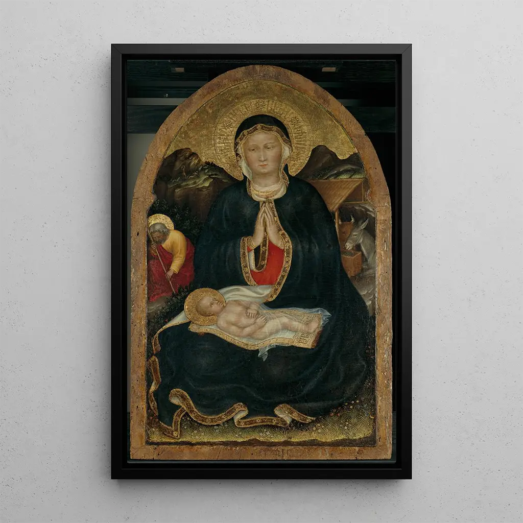 The art print of the Nativity by Gentile da Fabriano captures the magic and solemnity of Christ's birth. The vivid colors and meticulous details highlight the central scene, where the Virgin, the Child, and the surrounding figures are bathed in a golden light. The tempera technique, used by the artist, allows for the creation of rich textures and delicate nuances. This lively and dynamic work evokes an atmosphere of joy and devotion, inviting reflection on the meaning of the sacred birth.
