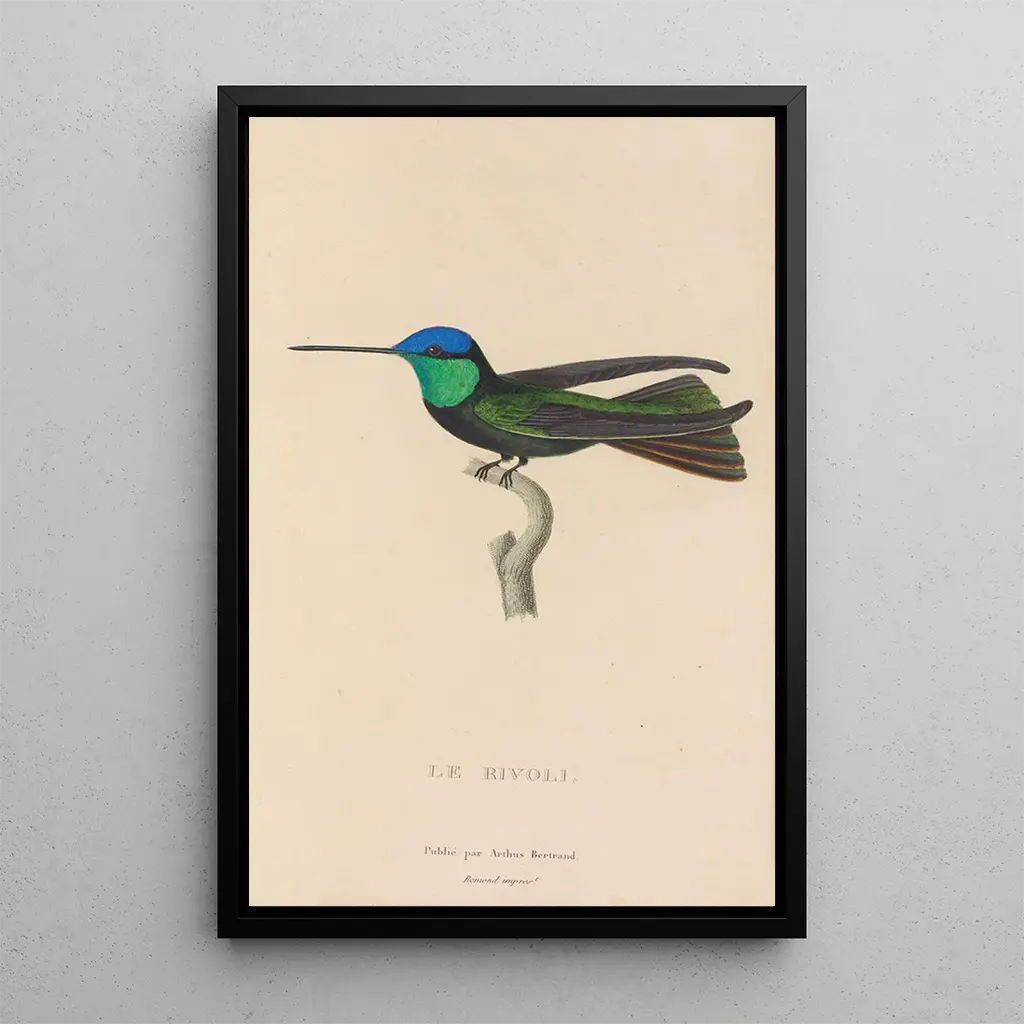 Histoire naturelle des oiseaux-mouches Pl04 : an ode to the lightness of wings The art print Histoire naturelle des oiseaux-mouches Pl04 transports us into a vibrant world of colors and delicacy. The dazzling shades of plumage, ranging from emerald greens to bright yellows, blend harmoniously to create an atmosphere of lightness and grace. The watercolor technique, used with finesse, captures the transparency of the wings and the vividness of the colors, bringing these fascinating creatures to life. Every detail, from the feathers to the sparkling eyes, seems to vibrate under the light, inviting the viewer to marvel at the beauty of nature. René Primevère Lesson: a pioneer of artistic ornithology René Primevère Lesson, naturalist and illustrator of the 19th century, marked his era with his contributions to the study of birds. His works, often inspired by his travels, testify to a deep respect for nature and a desire to document it with precision. Influenced by the romantic and scientific currents of his time, he managed to combine art and science, making his illustrations both aesthetic and informative. The period during which he worked is crucial for ornithology, as it coincides with a growing fascination for biodiversity and the need to preserve it. A decorative acquisition with multiple assets Choosing the art print Histoire naturelle des oiseaux-mouches Pl04 means selecting a decorative piece that will add a touch of elegance to your interior. Whether in a living room, office, or bedroom, this artwork will captivate attention and spark conversations. Its printing quality guarantees remarkable fidelity to the colors and details of the original work, while offering undeniable aesthetic appeal. By integrating this canvas into your decor, you add an artistic and natural dimension to your space, while celebrating the beauty of hummingbirds.