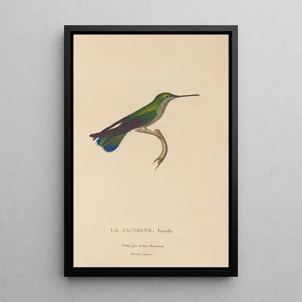 The reproduction of "Histoire naturelle des oiseaux-mouches Pl22" is a decorative piece that will enhance any space, whether a living room, office, or bedroom. Its exceptional print quality ensures fidelity to the colors and details of the original artwork, adding a touch of sophistication and nature to your interior. By choosing this canvas, you opt for a piece that not only beautifies your decor but also evokes the beauty and diversity of the natural world, creating a calming and inspiring atmosphere.
