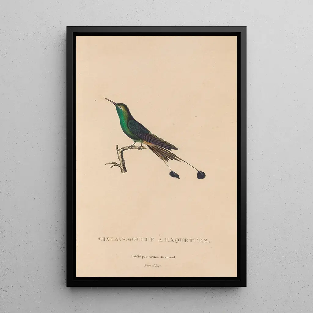 The art print Histoire naturelle des oiseaux-mouches Pl40 evokes a vibrant world where lightness and color meet. The hummingbirds, with their dazzling plumage, are depicted in a dynamic pose, capturing the very essence of their agility. The bright shades of green, blue, and yellow blend harmoniously, creating a lively and joyful atmosphere. The watercolor technique, used with finesse, allows for the delicate details of the feathers and movements to be rendered, offering a sense of lightness and fluidity. This piece invites a wondrous contemplation of the beauty of nature. René Primevère Lesson: a pioneer of artistic ornithology René Primevère Lesson, naturalist and illustrator of the 19th century, marked his era with his contributions to ornithology and the representation of bird species. Influenced by the scientific discoveries of his time, he knew how to combine scientific precision with artistic sensitivity. His works, including this art print Histoire naturelle des oiseaux-mouches Pl40, testify to his commitment to documenting biodiversity while celebrating the aesthetic beauty of birds. Lesson collaborated with scientists and explorers, which allowed him to access rare specimens and enrich his knowledge, making him a key figure in the field of naturalist illustration. A decorative acquisition with multiple assets The art print Histoire naturelle des oiseaux-mouches Pl40 is an ideal decorative piece to bring a touch of nature and color to your interior. Whether in a living room, office, or bedroom, this artwork will captivate attention and spark conversations. Its print quality guarantees fidelity to the original details, while its aesthetic appeal makes it a perfect choice for those who appreciate art and nature. By incorporating this canvas into your decor, you add not only a work of art but also an element of serenity and natural beauty to your living space.