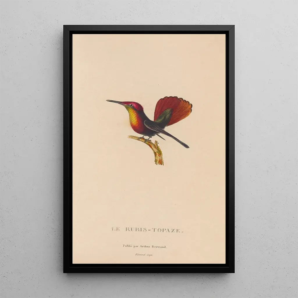 The art print of the painting Histoire naturelle des oiseaux-mouches Pl53 is an ideal addition to any interior decoration. Whether in a workspace, living room, or bedroom, this canvas brings a touch of nature and color. Its printing quality ensures perfect fidelity to the details and colors of the original work, allowing full appreciation of the beauty of these birds. By choosing this art print, you opt for a decorative piece that not only enhances your interior but also evokes the richness and diversity of nature.