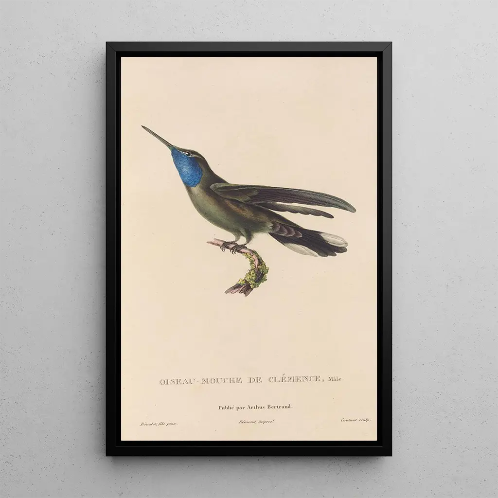 Histoire naturelle des oiseaux-mouches Pl81: a celebration of lightness The art print Histoire naturelle des oiseaux-mouches Pl81 transports the viewer into a vibrant world of colors and lightness. This work by René Primevère Lesson highlights delicate and graceful hummingbirds, captured in elegant poses. The bright shades of green, blue, and yellow blend harmoniously, creating an atmosphere that is both joyful and soothing. The engraving technique, precise and meticulous, pays tribute to the natural beauty of these creatures, while offering a sense of movement, as if they are about to take flight at any moment. René Primevère Lesson: a pioneer of artistic ornithology René Primevère Lesson, 19th-century naturalist and ornithologist, masterfully combined science and art in his works. Trained in the school of nature, he was influenced by the discoveries of his time, especially those from the exploration of exotic territories. His work sits at the crossroads of art and biology, contributing to a better understanding of avian species. Through his art prints, he not only documented wildlife but also sparked interest in the beauty and diversity of birds, making him an important figure in the history of ornithological illustration. A decorative acquisition with multiple advantages The art print Histoire naturelle des oiseaux-mouches Pl81 is an ideal decorative piece to enhance your interior. Whether in a living room, office, or bedroom, this artwork will add a touch of elegance and freshness to your decor. Its printing quality guarantees remarkable fidelity to the colors and details of the original work, while offering undeniable aesthetic appeal. By choosing this canvas, you opt for a piece that not only beautifies your space but also evokes the beauty of nature and the harmony of living forms.